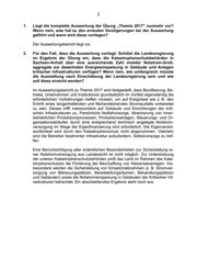 2 1. Liegt die komplette Auswertung der Übung „Themis 2017“ nunmehr vor? Wenn nein, was hat zu den erneuten Verzögerungen bei der Auswertung geführt und wann wird diese vorliegen? Der Auswertungsbericht liegt vor. 2. Für den Fall, dass die Auswertung vorliegt: Schätzt die Landesregierung im Ergebnis der Übung ein, dass die Katastrophenschutzbehörden in Sachsen-Anhalt über eine ausreichende Zahl mobiler Notstrom-Groß- aggregate zur dezentralen Energieeinspeisung in Gebäude und Anlagen kritischer Infrastrukturen verfügen? Wenn nein, wie umfangreich müsste die Ausstattung nach Einschätzung der Landesregierung sein und wie soll diese erreicht werden? Im Auswertungsbericht zu Themis 2017 wird festgestellt, dass Bevölkerung, Be- triebe, Unternehmen und Institutionen grundsätzlich im Vorfeld eigenständig die erforderlichen Vorkehrungen treffen müssen, um auf Ereignisse wie z. B. den Eintritt eines langanhaltenden und flächendeckenden Stromausfalls vorbereitet zu sein. Dieses trifft insbesondere auf Gebäude und Einrichtungen der kriti- schen Infrastrukturen zu. Persönliche Notfallvorsorge, Absicherung von inner- betrieblichen Produktionsprozessen, Produktionsanlagen, Steuerungs- und Or- ganisationsabläufen durch eine entsprechend technisch angelegte Notstrom- versorgung im Wege der Eigenfinanzierung sind erforderlich. Die Eigenverant- wortlichkeit wird durch den Katastrophenschutz nicht abgenommen. Vielmehr sind die Betreiber bestimmter Infrastruktur aufzufordern, Selbstvorsorge zu tref- fen. Eine Berücksichtigung aller erdenklichen Besonderheiten zur Sicherstellung ei- ner Notstromversorgung aus Landessicht ist nicht möglich. Zur Unterstützung der unteren Katastrophenschutzbehörden prüft das Land im Rahmen des Kata- strophenschutzes die Förderung der Beschaffung von Netzersatzanlagen. Ins- besondere werden die Sicherstellung von Einsatzmaßnahmen (z. B. Stromver- sorgung von Betreuungsplätzen, Bereitstellungsräumen, Behandlungsplätzen und Gebäuden) sowie die Notstromeinspeisung in Gebäuden der Kritischen Inf- rastrukturen betrachtet. Ein abschließendes Ergebnis steht noch aus.