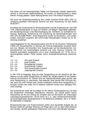 2 Die Kreise und die kreisangehörigen Städte und Gemeinden arbeiten eigenverant- wortlich in kommunaler Selbstverwaltung. Sie wurden um Stellungnahme zu dieser Kleinen Anfrage gebeten. Diese Stellungnahmen sind in die Antwort eingeflossen. Die durch die Straßenbauverwaltung des Landes Sachsen-Anhalt (SBV LSA) zur Verfügung gestellten Informationen beruhen auf einer Auswertung mit dem Stand 08.08.2017. Grundlage der Zustandsnote für Brückenbauwerke sind die Ergebnisse der nach DIN 1076 „Ingenieurbauwerke im Zuge von Straßen und Wegen“ regelmäßig stattfinden- den Bauwerksprüfungen unter Berücksichtigung der „Richtlinien zur einheitlichen Er- fassung, Bewertung, Aufzeichnung und Auswertung der Bauwerksprüfungen nach DIN 1076 (RI-EBW-PRÜF)“. Diese Regelwerke wurden für Bundesfern- und Landes- straßen verbindlich eingeführt, den kommunalen Baulastträgern wurden sie zur An- wendung empfohlen. Ausschlaggebend für den Bauwerkszustand sind die für die einzelnen Teilbauwerke (TBW) vom Bauwerksprüfer im Rahmen der Prüfung festgestellten einzelnen Schä- den bzw. Mängel, die hinsichtlich ihrer Auswirkungen auf die Standsicherheit, Ver- kehrssicherheit und Dauerhaftigkeit bewertet und unter Nutzung moderner DV- Systeme automatisch ausgewertet und zu einer Zustandsnote von 1,0 bis 4,0 zu- sammengefasst werden. Dabei werden sechs Zustandsnotenbereiche unterschie- den: 1,0 – 1,4 sehr guter Zustand 1,5 – 1,9 guter Zustand 2,0 – 2,4 befriedigender Zustand 2,5 – 2,9 ausreichender Zustand 3,0 – 3,4 nicht ausreichender Zustand 3,5 – 4,0 ungenügender Zustand. In DIN 1076 ist festgelegt, dass die erste Hauptprüfung vor der Abnahme der Bau- leistung und die zweite Hauptprüfung vor Ablauf der Verjährungsfrist für die Gewähr- leistung durchzuführen ist. Danach sind die Ingenieurbauwerke jedes sechste Jahr einer Hauptprüfung zu unterziehen. Das bedeutet, dass gemäß DIN 1076 jede Brü- cke, bevor sie unter Verkehr geht, bereits mindestens einmal einer Hauptprüfung un- terzogen worden sein sollte und im weiteren zeitlichen Verlauf einer ständigen Kon- trolle unterliegt. Die Zustandsnote bildet die Grundlage für die weitere Erhaltungsplanung und lässt die Dringlichkeit notwendiger Maßnahmen erkennen. Sie erlaubt jedoch keinen Rückschluss auf Art und Umfang der Schäden oder auf die Kosten der notwendigen Instandsetzungsmaßnahmen. Grund hierfür ist u. a., dass Verkehrssicherheitsmän- gel berechtigterweise überproportional in die Bewertung einfließen, wie z. B. fehlen- de Gitterstäbe im Geländer. Brückensanierungen und Ersatzneubauten stellen eine dauerhafte Aufgabe dar, da Brücken selbst bei ständiger Wartung und Pflege altern und vor allem ältere Brücken den heutigen, deutlich gestiegenen Ansprüchen nicht mehr vollumfänglich genügen.