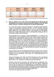 5 7. Teilt die Landesregierung die Auffassung, dass es mit Blick auf künftig sinkende Zahlungen aus dem Regionalisierungsgesetz an das Land Sach- sen-Anhalt sachgerecht wäre, die Zuschussminderungen und Pönalen der zweckgebundenen Rücklage zur Sicherstellung der Zahlungsverpflich- tungen nach dem Regionalisierungsgesetz zuzuführen? Bitte begründen. Ja, diese Auffassung wird geteilt. Die Zuschussminderungen und Pönalen wer- den seit 2017 bereits der zweckgebundenen Rücklage zur Sicherstellung der Zahlungsverpflichtungen nach dem Regionalisierungsgesetz zugeführt. Diese Zuführung ist notwendig, um das Defizit zwischen den vom Bund zugewiesenen Regionalisierungsmitteln und den Zahlungsverpflichtungen aus den Verkehrs- verträgen ab dem Jahr 2022 zu decken. Allerdings ist die Grundintention der Frage bereits aufgrund der formalen Grundlagen geübte Praxis. Die Rückflüsse aus Minderungen und Pönalen blei- ben weiterhin zweckgebunden und fließen aktuell in die Rücklage oder ansons- ten in das Ausgabevolumen für den ÖPNV zurück. In der Regel speist dies z. B. das ÖPNV-Investitionsprogramm des Landes.