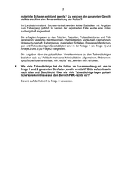 3 materielle Schaden entstand jeweils? Zu welchen der genannten Gewalt- delikte erschien eine Pressemitteilung der Polizei? Im Landeskriminalamt Sachsen-Anhalt werden keine Statistiken mit Angaben zum Tathergang geführt. In keinem der registrierten Fälle wurde eine Unter- suchungshaft angeordnet. Die erfragten Angaben zu den Tatorten, Tatzeiten, Polizeidirektionen und Poli- zeirevieren, verletzten Rechtsnormen, Themenfeldern, vorläufigen Festnahmen, Untersuchungshaft, Extremismus, materiellen Schäden, Presseveröffentlichun- gen und Tatverdächtigen/Geschädigten sind in der Anlage 1 (zu Frage 1) und Anlage 2 und 3 (zu Frage 2) dargestellt. Die Angaben über die polizeilichen Vorerkenntnisse zu den Tatverdächtigen beziehen sich auf Politisch motivierte Kriminalität im Allgemeinen. Phänomen- spezifische Vorerkenntnisse, wie „rechts“ etc., werden nicht erhoben. 4. Wie viele Tatverdächtige hat die Polizei im Zusammenhang mit den in Frage 1 und 2 genannten Straftaten jeweils ermittelt? Bitte aufschlüsseln nach Alter und Geschlecht. Über wie viele Tatverdächtige lagen polizei- liche Vorerkenntnisse aus dem Bereich PMK-rechts vor? Es wird auf die Antwort zu Frage 3 verwiesen.
