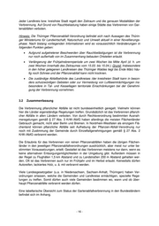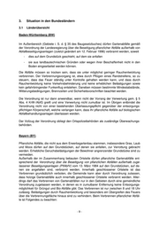 Sachsen-Anhalt (ST) Siehe Abschnitt 4.1. Schleswig-Holstein (SH) Die für das Land Schleswig-Holstein geltende Landesverordnung über die Entsorgung von pflanzlichen Abfällen außerhalb von Abfallentsorgungsanlagen vom 01. Juni 1990 gestattet die Verbrennung von pflanzlichen Abfällen, die - auf landwirtschaftlich, forstwirtschaftlich oder gärtnerisch genutzten Grundstücken, - bei der Unterhaltung von Verkehrswegen und Gewässern, - bei Maßnahmen der Landschaftspflege und der Flurbereinigung sowie - in Park-, Friedhof- oder sonstigen Grünanlagen anfallen, sofern - eine Entsorgung der Abfälle im Rahmen der gärtnerischen Bewirtschaftung nicht möglich ist, - die Abfälle auf dem eigenen Grundstück angefallen sind und dort auch verbrannt werden - und hierdurch keine Gefahren für die Umgebung zu erwarten sind. Relativ undeutlich bleibt die Bestimmung der Abfallerzeuger dahingehend, ob sie sich auch auf Privatpersonen bezieht. Da unter einem "gärtnerisch genutzten Grundstück" nach Auf- fassung des Umweltministeriums auch das herkömmlich innerörtliche Einfamilienhaus- grundstück zu verstehen ist, steht somit grundsätzlich auch dessen Benutzern die Möglich- keit des Verbrennens schwer kompostierbarer Pflanzenteile offen. Thüringen (TH) Ausnahmsweise gestattet die Thüringer Verordnung über die Beseitigung von pflanzlichen Abfällen (Pflanzenabfall-Verordnung - PflanzAbfV) innerhalb festgelegter Zeiträume das Verbrennen von trockenem und unbelastetem Baum- und Strauchschnitt, der auf nicht ge- werblich genutzten Grundstücken anfällt, sofern: - das Wohl der Allgemeinheit nicht beeinträchtigt wird und keine erheblichen Belästi- gungen der Nachbarschaft hervorgerufen werden sowie - eine Nutzung der von dem öffentlich-rechtlichen Entsorgungsträger angebotenen Entsorgungsmöglichkeiten nicht zumutbar ist und keine Überlassungspflicht an den öffentlich-rechtlichen Entsorgungsträger besteht. In der Verordnung werden Anforderungen an die Verbrennung formuliert. So dürfen infolge der Verbrennung keine Gefahren oder Belästigungen durch Rauch oder Funkenflug eintre- ten. Zum Anzünden dürfen keine anderen Stoffe benutzt werden. Es müssen bestimmte Mindestabstände eingehalten sowie die entsprechenden Sicherheitsvorkehrungen getroffen werden. - 15 -