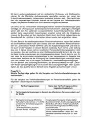 2 Mit dem Landesvergabegesetz soll ein verlässlicher Ordnungs- und Wettbewerbs- rahmen für die öffentliche Auftragsvergabe geschaffen werden, der neben den (Lohn-)Kostenwettbewerb insbesondere qualitative Kriterien stellt. Gleichwohl kön- nen zum gegenwärtigen Zeitpunkt, speziell bei der Vergabe von Verkehrsdienstleis- tungen, die positiven Effekte noch nicht belastbar eingeschätzt werden. Die vom Land zu betreuenden schienengebundenen Verkehrsdienstleistungen (also Verträge zur Erbringung von Schienenpersonennahverkehrs-Leistungen) unterliegen schon jetzt den hier geltenden europarechtlichen Ausschreibungskriterien. Daher werden keine gravierenden Auswirkungen erwartet, zumal sich die Vergütungs- niveaus der Bewerber auf dem deutschen Markt durch den Druck insbesondere der Gewerkschaft der Lokführer in den letzten Jahren bereits stark angenähert haben. Für den Bereich des straßengebundenen Personennahverkehrs haben die Landkrei- se und kreisfreien Städte nach dem Gesetz über den öffentlichen Personennahver- kehr im Land Sachsen-Anhalt (ÖPNVG LSA) die Aufgabenträgerschaft und sind da- mit auch für die Vergaben in diesem Bereich zuständig. Auch hier ist unter Geltung des zum 1. Januar dieses Jahres novellierten Personenbeförderungsgesetzes nicht zu erwarten, dass es kurzfristig zu einer Wettbewerbsintensität kommt, die eine vali- de Basis für die Auswirkungen des Vergabegesetzes bietet. Grund dafür ist zum Ei- nen, dass die kommunalen Aufgabenträger in der Vergangenheit im Regelfall ihre kommunalen Betriebe mit der Erbringung der Verkehrsleistungen beauftragt haben, und zum Anderen sind es die langen Laufzeiten für Linienverkehrsgenehmigungen. Für den Bereich des Schienengüterverkehrs, der Binnenschifffahrt und den Luftver- kehr hat die Landesregierung für die Auswahl des Leistungserbringers keine Zustän- digkeit, so dass auch für diesen Bereich keine Angaben gemacht werden können. Frage Nr. 3: Welche Tarifverträge gelten für die Vergabe von Verkehrsdienstleistungen als repräsentativ? Für die Vergabe von Verkehrsdienstleistungen im Personennahverkehr gelten die folgenden Tarifverträge als repräsentativ: Lfd. Tarifvertragsparteien Name des Tarifvertrages und Ver- Nr. tragsabschlussdatum 1. Tarifvertragliche Regelungen im Bereich des öffentlichen Personenverkehrs auf der Straße 1.1 Arbeitgebervereinigung öffentlicher Vergütungstarifvertrag der (Halberstädter Nahverkehrsunternehmen e. V. (AVN) Bus-Betrieb GmbH, Kraftverkehrsgesellschaft und Vereinte Dienstleistungsgewerk- Börde-Bus, Ohre-Bus Verkehrsgesellschaft, schaft (Ver.di) Personenverkehrsgesellschaft Altmarkkreis Landesbezirksleitung Sachsen, Salzwedel mbH, Sachsen-Anhalt, Thüringen Q-bus Nahverkehrsgesellschaft mbH, Harzer Verkehrsbetriebe GmbH, HVG Hal- berstädter Verkehrs-GmbH) vom 21. April 2011