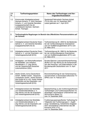 3 Lfd. Tarifvertragsparteien Name des Tarifvertrages und Ver- Nr. tragsabschlussdatum 1.2 Kommunaler Arbeitgeberverband Spartentarif Nahverkehr Sachsen-Anhalt Sachsen-Anhalt e. V. (KAV Sachsen- (TV-N LSA) vom 18. Dezember 2007, Anhalt e. V. und Vereinte Dienstleis- zuletzt geändert am 1. April 2010 tungsgewerkschaft (Ver.di) Landesbezirk Sachsen, Sachsen- Anhalt, Thüringen 2. Tarifvertragliche Regelungen im Bereich des öffentlichen Personenverkehrs auf der Schiene 2.1 Arbeitgeberverband Deutscher Eisen- Tarifvereinbarung Nr. 2946 für die Bedienste- bahnen e. V. und Vereinte Dienstleis- ten der nichtbundeseigenen Eisenbahnen tungsgewerkschaft (Ver.di) und von Kraftfahrzeugbetrieben (ETV) vom 22. März 2012 2.2 Arbeitgeberverband Deutscher Eisen- Tarifvereinbarung Nr. 2960 für die Bedienste- bahnen e. V. und der Eisenbahn- und ten der nichtbundeseigenen Eisenbahnen Verkehrsgewerkschaft (EVG) und von Kraftfahrzeugbetrieben (ETV) vom 22. März 2012 2.3 Arbeitgeber- und Wirtschaftsverband Bundes-Rahmen Lokomotivführertarifvertrag der Mobilitäts- und Verkehrs- (BuRa-LfTV Agv MoVe) für die Schienenbah- dienstleister e. V. (Agv MoVe) nen des Personen- und Güterverkehrs in der und der Gewerkschaft Deutscher Bundesrepublik Deutschland vom 15. April Lokomotivführer (GDL) 2011 2.4 Abellio GmbH, Arriva Deutschland Branchentarifvertrag für den Schienenperso- GmbH , BeNEX GmbH , Hessische nennahverkehr in Deutschland (Branchen TV Landesbahn GmbH , Keolis Deutsch- SPNV) vom 14. Februar 2011 land GmbH & Co. KG, Veolia Verkehr GmbH(G6) und der Eisenbahn- und Verkehrsgewerkschaft (EVG) 2.5 Arbeitgeberverband der Mobilitäts- Basistarifvertrag zu den funktionsspezifischen und Verkehrsdienstleister e. V. Tarifverträgen und Funktionsspezifischen Ta- (Agv MoVe) und der der Eisenbahn rifverträgen verschiedener Unternehmen des und Verkehrsgewerkschaft (EVG) DB Konzerns (Basis TV) vom 14. Dezember 2009 2.6 Arbeitgeberverband der Mobilitäts- Funktionsgruppenspezifischer Tarifvertrag für und Verkehrsdienstleister e. V. Tätigkeiten der Funktionsgruppe 2 - Zugbil- (Agv MoVe) und der Eisenbahn und dung/ -bereitstellung, Verkehrliche Aufgaben Verkehrsgewerkschaft (EVG) SGV verschiedener Unternehmen des DB Konzerns (FGr 2-TV) vom 14. Dezember 2009