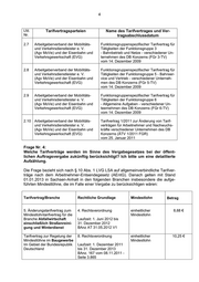 4 Lfd. Tarifvertragsparteien Name des Tarifvertrages und Ver- Nr. tragsabschlussdatum 2.7 Arbeitgeberverband der Mobilitäts- Funktionsgruppenspezifischer Tarifvertrag für und Verkehrsdienstleister e. V. Tätigkeiten der Funktionsgruppe 3 (Agv MoVe) und der Eisenbahn und - Bahnbetrieb und Netze - verschiedener Un- Verkehrsgewerkschaft (EVG) ternehmen des DB Konzerns (FGr 3-TV) vom 14. Dezember 2009 2.8 Arbeitgeberverband der Mobilitäts- Funktionsgruppenspezifischer Tarifvertrag für und Verkehrsdienstleister e. V. Tätigkeiten der Funktionsgruppe 5 - Bahnser- (Agv MoVe) und der Eisenbahn und vice und Vertrieb - verschiedener Unterneh- Verkehrsgewerkschaft (EVG) men des DB Konzerns (FGr 5-TV) vom 14. Dezember 2009 2.9 Arbeitgeberverband der Mobilitäts- Funktionsgruppenspezifischer Tarifvertrag für und Verkehrsdienstleister e. V. Tätigkeiten der Funktionsgruppe 6 (Agv MoVe) und der Eisenbahn und - Allgemeine Aufgaben - verschiedener Un- Verkehrsgewerkschaft (EVG) teernehmen des DB Konzerns (FGr 6-TV) vom 14. Dezember 2009 2.10 Arbeitgeberverband der Mobilitäts- Tarifvertrag 1/2011 zur Änderung von Tarif- und Verkehrsdienstleister e. V. verträgen für Arbeitnehmer und Nachwuchs- (Agv MoVe) und der Eisenbahn und kräfte verschiedener Unternehmen des DB Verkehrsgewerkschaft (EVG) Konzerns (ÄTV 1/2011 FGR) vom 25. Januar 2011 Frage Nr. 4: Welche Tarifverträge werden im Sinne des Vergabegesetzes bei der öffent- lichen Auftragsvergabe zukünftig berücksichtigt? Ich bitte um eine detaillierte Aufzählung. Die Frage bezieht sich nach § 10 Abs. 1 LVG LSA auf allgemeinverbindliche Tarifver- träge nach dem Arbeitnehmer-Entsendegesetz (AEntG). Danach gelten mit Stand 01.01.2013 in Sachsen-Anhalt in den folgenden Branchen insbesondere die aufge- führten Mindestlöhne, die im Falle einer Vergabe zu berücksichtigen wären: Tarifvertrag/Branche Rechtliche Grundlage Mindestlohn Betrag 5. Änderungstarifvertrag zum 4. Rechtsverordnung einheitlicher 8,68 € Mindestlohntarifvertrag für die Mindestlohn Branche Abfallwirtschaft Laufzeit: 1. Juni 2012 bis einschließlich Straßenreini- 31. Dezember 2012 gung und Winterdienst BAnz AT 31.05.2012 V1 Tarifvertrag zur Regelung der 8. Rechtsverordnung einheitlicher 10,25 € Mindestlöhne im Baugewerbe Mindestlohn Im Gebiet der Bundesrepublik Laufzeit: 1. Dezember 2011 Deutschland bis 31. Dezember 2013 BAnz. 167 vom 08.11.2011 - Seite 3.865