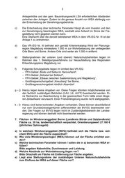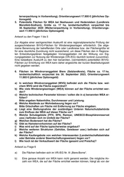 5 c) Die Entscheidung über technische Parameter hängt ab vom Investor und den zur Genehmigung beantragten WEA, weshalb eine Antwort im Sinne der Fra- gestellung nicht gegeben werden kann. Eine Übersicht über die derzeit betriebenen WEA in dem VR-/EG Nr. VII ist der Anlage 1 zu entnehmen. d) Das VR-/EG Nr. VII befindet sich in - ca. 1.000 m Entfernung zu den Ortschaften Pechfitz und Siems, - ca. 850 m Entfernung zur Ortschaft Tarnefitz und - ca. 1.200 m Entfernung zur Ortschaft Sichau. e) Ja, im Aufstellungsverfahren zur Ergänzung des Regionalen Entwicklungs- plans Altmark (REP Altmark) 2005 um den Sachlichen Teilplan „Wind“ für die Planungsregion Altmark zur Ausweisung des VR-/EG Nr. VII. f) Folgende Schutzgebiete liegen im Umfeld des VR-/EG: - Naturpark Drömling, - FFH 0018LSA (Drömling), - SPA 0024LSA (Feldflur bei Kusey), - IBA 0007LSA (Vogelschutzgebiet Drömling), - LSG 0031SAW (Drömling) g – j) Hierzu liegen keine Angaben vor. Diese Fragen könnten möglicherweise von den fachlich zuständigen Behörden (LAU, LK, ALFF) beantwortet werden. Ei- ne Recherche zur Beantwortung in der gewünschten Form hätte einen länge- ren Zeitaufwand verursacht. Einer Fristverlängerung wurde nicht stattgegeben. k – l) Hierzu sind keine konkreten Angaben vorhanden. Diese können abschließend nur vom Grundstückseigentümer (offensichtlich die BVVG) beantwortet wer- den. Die Fragen zur BVVG liegen nicht im Zuständigkeitsbereich der Landes- regierung und können deshalb nicht beantwortet werden. 9. Wie viele Rückzahlungsanträge für bereits gezahlte „Abschöpfungszahlun- gen“ der Betreiber von Windenergieanlagen auf ehemaligen BVVG-Flächen des Landes Sachsen-Anhalt an die BVVG liegen bereits vor? Bitte je Rückzahlungsantrag die Anzahl der WEA den ehemaligen BVVG- Flächen zuordnen und dazu die entsprechende Rückforderung der „Ab- schöpfungszahlungen“ (Euro/Fläche) zuordnen. 10. Wie viele Kaufverträge zwischen BVVG und Käufern von BVVG-Flächen mit nachfolgender Nutzung von Windenergie liegen in Sachsen-Anhalt vor? Bitte die entsprechende Anzahl der Verträge mit den jeweiligen Flächen- größen (ha) seit 2000 listen. 11. Wie hoch waren die Zahlungen (Euro), die Windkraftnutzer auf ehemaligen BVVG-Flächen bisher an die BVVG geleistet haben? Bitte die entsprechenden Summen seit 20000 listen und den jeweiligen Ver- trägen und Flächen (nach Frage 10) zuordnen. Antwort zu den Fragen 9 bis 11 Die Fragen zur BVVG liegen nicht im Zuständigkeitsbereich der Landesregierung und können deshalb nicht beantwortet werden.