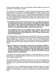 3 Sachsen-Anhalts gebeten, Hilfen für geschädigte landwirtschaftliche Unternehmen auf Bundes- und EU-Ebene zu prüfen. Es wird jedoch darauf hingewiesen, dass für nationale Stützungsprogramme weitere Voraussetzungen, insbesondere aus beihilferechtlichen Gründen, zu erfüllen sind. Danach müsste die Dürre als ein einer Naturkatastrophe gleichgestelltes widriges Witterungsverhältnis eingestuft werden. Widrige Witterungsverhältnisse, wie die Dür- re, können Naturkatastrophen gleichgestellt werden, wenn dadurch mehr als 30 % der durchschnittlichen Jahreserzeugung des betreffenden landwirtschaftlichen Unter- nehmens zerstört wurde. 4. Anbauflächen werden auch zukünftig immer mehr vor Witterungseinflüssen und Schädlingen geschützt werden müssen. Eine Möglichkeit des langfristi- gen Schutzes wären sogenannte Mehrfachversicherungen (gegen Elemen- tarschäden, wie Hochwasser, Hagel, Tornados oder Frost) für die Landwirt- schaft, um sich gegen Naturgewalten entsprechend abzusichern. Diese Möglichkeit gibt es in Deutschland jedoch bislang nicht. Zieht die Landesregierung eine Bundesratsinitiative diesbezüglich in Betracht? Wird die zuständige Ministerin diese Möglichkeit auf der nächsten Agrarminister- konferenz thematisieren? Das Bundesministerium für Ernährung und Landwirtschaft wurde bereits im Septem- ber 2017 gebeten, einen Bericht zum Risiko- und Krisenmanagement gegenüber der Agrarministerkonferenz abzugeben. Der Bericht wird der Herbst-Agrarminister- konferenz 2018 vorgelegt. Danach soll eine umfassende Bewertung und gegebenen- falls Neujustierung der bisherigen Haltung Deutschlands zum Risikomanagement er- folgen. 5. Welche Konzepte und Planungen, insbesondere die Teilaspekte Aufklären - Beraten - Vorbeugen - Entschädigen in ihrem Zusammenspiel, zieht die Lan- desregierung in Betracht, um derartigen Ereignissen langfristig zu begegnen und die landwirtschaftlichen Betriebe für die Herausforderungen sich än- dernder klimatischer Bedingungen fit zu machen und damit die Versor- gungssicherheit zu gewährleisten? Grundsätzlich ist festzustellen, dass das Risiko- und Krisenmanagement ein wesent- licher Baustein im landwirtschaftlichen Unternehmen sein muss, wie dies auch in an- deren Sektoren betrieben wird. Die landwirtschaftlichen Unternehmen haben hier zum Teil noch großen Nach- holebedarf, da der Sektor erst mit Ausrichtung der Gemeinsamen Agrarpolitik auf den Markt auch in dem Bereich des Risiko- und Krisenmanagements verstärkt gefor- dert ist. Aufgrund der mit der Landwirtschaft verbundenen sensiblen Aufgaben wie Ernäh- rungssicherung, der Schutz der natürlichen Ressourcen und die besondere Abhän- gigkeit von Klimaeinflüssen, trägt auch die Gesellschaft eine gewisse Mitverantwor- tung.