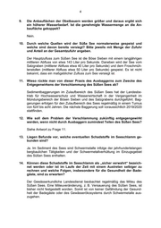 5 15. Sollten diesbezüglich (Frage 13. und 14.) keine Erkenntnisse vorliegen: Besteht die Absicht, diesbezügliche Erkenntnisse zu gewinnen (wann und wie)? Siehe Antwort zu Frage 13 und 14. 16. Wieso wird die Schilfmahd nicht mehr praktiziert, wodurch der Nährstoffe- intrag durch absterbendes Schilf reduziert, sowie gleichzeitig ein stärke- res Wurzelwachstum angeregt würde, welches die betreffenden Uferberei- che vor Geländeabtrag schützen könnte? Der für die Gewässerunterhaltung zuständige Landesbetrieb für Hochwasser- schutz und Wasserwirtschaft hat bisher keine Schilfmahd im Bereich des Süßen Sees vorgenommen. 17. Sind die derzeitigen baulichen Maßnahmen und konzeptionellen Maßnah- men geeignet, mit den zunehmenden Starkregenereignissen fertig zu wer- den? Ja, die Mischwasserkanalisation entspricht den allgemein anerkannten Regeln der Technik. 18. Welche baulichen Maßnahmen wären erforderlich, um einen Fäkalienein- trag in den Süßen See dauerhaft zu verhindern? Um einen Fäkalieneintrag vollständig zu verhindern, müssten alle Abwasserein- leitungen in den Süßen See unterbunden oder einer vorherigen Abwasserbe- handlung zugeführt werden. Dazu müsste auch das von befestigten Flächen abfließende Niederschlagswasser gesammelt und einer Behandlung zugeführt werden. 19. Welche baulichen Maßnahmen davon sind bereits angedacht und/oder ge- plant? Im Sinne der Antwort zu Frage 18 sind keine baulichen Maßnahmen angedacht oder geplant. Zu Maßnahmen zur Reduzierung der Abschläge wird auf die Ant- wort zu Frage 24 verwiesen. 20. Ist ein etwaig vorhandener und/oder geplanter Grobstoffrechen in der La- ge, das Problem des Bakterieneintrages in den Süßen See, und damit der gesundheitlichen Gefährdung insbesondere der Badegäste, zu reduzieren oder gar zu verhindern, oder handelt es sich hierbei lediglich um eine kosmetische Maßnahme? Der Einbau eines Grobstoffrechens führt zu einer Verringerung des Eintrags von pathogenen Keimen. Keimbelastete Abwasserbestandteile wie Toilettenpa- pier oder Hygieneartikel werden zurückgehalten.