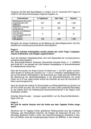 2 Die Landesregierung führt keine eigene Definition zu direkten oder indirekten Ar- beitsplätzen, sondern greift auf öffentliche bzw. amtliche Zahlen zurück. Hinsichtlich einer Unterscheidung der direkten und indirekten Arbeitsplätze werden zu den indirekten Arbeitsplätzen solche gerechnet, die dadurch entstehen, dass die Aktivitäten in den Tagebauen und den Kraftwerken die Nachfrage nach Gütern oder Dienstleistungen aus anderen Bereichen auslösen. Vielfach wird auch von weiteren induzierten Arbeitsplätzen ausgegangen. Dies sind Arbeitsplätze, die durch die In- vestitionen und Konsumausgaben der Beschäftigten im Braunkohlensektor entste- hen. Im Zusammenhang mit den Beschäftigtenzahlen in der Erneuerbaren-Energien- Branche wird auf die Methodik der GWS-Studie hingewiesen, die regelmäßig durch das Bundesministerium für Wirtschaft und Energie in Auftrag gegeben wird. Frage 2: Wie viele Braunkohlekraftwerke und wie viele Braunkohlestaubfeuerungsanla- gen (mit einer Feuerungsleistung von 5 bis 50 MW) gibt es in Sachsen-Anhalt? Bitte für jedes Kraftwerk und für jede Anlage Bezeichnung bzw. Standort (z. B. Schkopau, Dessau, Amsdorf, Wählitz, Deuben, Zeitz, Könnern ...), Betreiberfir- ma und/oder Eigentümer sowie die installierte Leistung für die elektrische Energie und den Anteil an Wärme angeben. Bitte auch angeben, für welche Zwecke bzw. technologischen Anwendungen und in welchem Umfang die Energie eingesetzt wird (z. B. Prozessdampf für einen Chemiepark mit x Ton- nen pro Stunde oder Wärmeversorgung von y Haushalten). Dargestellt sind in den als Anlage beigefügten Tabellen die in Sachsen-Anhalt betriebenen Feuerungsanlagen mit einer Leistung zwischen 5 und 50 MW (nach Nummern 1.1 und 1.2.1 Anhang 1, der Vierten Verordnung zur Durchführung des Bundes-Immissionsschutzgesetzes (Verordnung über genehmigungsbedürftige Anlagen - 4. BImSchV)), die 2016 im Rahmen der immissionsschutzrechtlichen Berichtspflicht Braunkohle als eingesetzten Brennstoff angegeben haben sowie die entsprechenden Einsatzmengen. Die Tabellen enthalten ferner Feuerungswärmeleistung und elektrische Wirkleistung der Anlagen. Der Anteil an genutzter Wärme und die genauen Einsatzzwecke der Energie sind nicht Teil der Berichtspflichten. Unter Bergaufsicht und damit in die Zuständigkeit des Landesamtes für Geologie und Bergwesen (LAGB) fallen in Sachsen-Anhalt die drei Braunkohlekraftwerke in Ams- dorf, Deuben und Wählitz. Frage 3: Wie viele direkte Arbeitsplätze gibt es jeweils in den unter Frage 2 angespro- chenen Kraftwerken und Anlagen? Dem LAGB liegen keine Angaben zur Anzahl der direkten bzw. indirekten Arbeits- plätze in den unter Bergaufsicht stehenden Kraftwerken bzw. im Tagebau Profen vor. Gemäß § 9 Unterlagenbergverordnung haben die Unternehmer der Bergbehörde je- weils bis Ende Februar eines Kalenderjahres, bezogen auf den 31. Dezember des