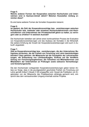 3 Frage 5: Welche anderen Formen der Kooperation zwischen Hochschulen und Unter- nehmen sind in Sachsen-Anhalt üblich? Welchen finanziellen Umfang er- reichen diese? Es sind keine weiteren Formen der formellen Kooperation bekannt. Frage 6: Ist geplant, die Zahl der Kooperationsverträge bzw. -vereinbarungen zwischen Hochschulen bzw. Instituten oder einzelnen Hochschullehrerinnen und Hoch- schullehrern und Unternehmen der Privatwirtschaft gleich zu halten, zu verrin- gern oder zu erhöhen? In welchem Ausmaß? Die Hochschulen betreiben seit Jahren einen kontinuierlichen Prozess der Evaluation von Kooperationsvereinbarungen und des Ausbaus der Kontakte in die Wirtschaft. Die weitere Erhöhung der Anzahl der Kooperationsvereinbarungen wird auch in Zu- kunft angestrebt. Frage 7: Gibt es Kooperationsverträge bzw. -vereinbarungen, die den Unternehmen Be- fugnisse einräumen, die die Freiheit von Forschung und Lehre beeinträchtigen könnten? Dazu gehören: die Mitsprache bei der Konzeption der Lehrveranstal- tungen, die Entsendung von Lehrbeauftragten, Einfluss auf die Veröffent- lichung von Forschungsergebnissen, die Teilnahme von Mitarbeiterinnen und Mitarbeitern der Unternehmen an Prüfungen sowie exklusive Vermarktungs- und Verwertungsrechte. Die den Hochschulen vorliegenden Kooperationsvereinbarungen geben keinen An- lass zur Sorge, dass in die grundgesetzlich geschützte Freiheit von Forschung und Lehre gemäß Artikel 5 Absatz 3 GG eingegriffen wird. Soweit die Publikation von Er- gebnissen von der Mitsprache des Projektpartners abhängig gemacht wird, ent- spricht dies dem vertrauensvollen Umgang innerhalb solcher Projekte.