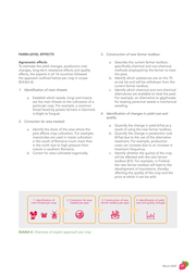 FARM-LEVEL EFFECTS 3. Construction of new farmer toolbox: Agronomic effects a. Describe the current farmer toolbox, To estimate the yield changes, production cost specifically chemical and non-chemical changes, long-term resistance effects and quality methods employed by the farmer to treat effects, the experts in all 16 countries followed the pest; the approach outlined below per crop in scope b. Identify which substances are on the 75 (Exhibit 6): at-risk list and will be withdrawn from the current farmer toolbox; 1. Identification of main threats: c. Identify which chemical and non-chemical alternatives are available to treat the pest. a. Establish which weeds, fungi and insects For example, an alternative to glyphosate are the main threats to the cultivation of a for treating perennial weeds is mechanical particular crop. For example, a common weeding. threat faced by potato farmers in Denmark is blight (a fungus). 4. Identification of changes in yield cost and quality 2. Correction for area treated: a. Quantify the change in yield (t/ha) as a a. Identify the share of the area where the result of using the new farmer toolbox; pest affects crop cultivation. For example, b. Quantify the change in production cost insecticides are used in maize cultivation (€/ha) due to the use of the alternative in the south of Romania much more than treatment. For example, production in the north due to high pressure from costs can increase due to an increase in insects in southern Romania; treatment frequency; b. Correct for area cultivated organically. c. Identify whether the quality of the crop will be affected with the new farmer toolbox (€/t). For example, in Finland, the new farmer toolbox will lead to the development of mycotoxins, thereby affecting the quality of the crop and the price at which it can be sold. 1. Identification of 2. Correction for area 3. Construction of new 4. Identification of yield, main threats per crop treated per pest farmer toolbox per pest cost and quality changes Exhibit 6: Overview of expert approach per crop March 2020 21