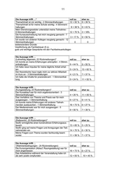 11 Die Aussage trifft …* voll zu eher zu Thema/Inhalt ist mir wichtig - 2 Stimmenthaltungen 12 = 52 % 9 = 39 % Thema/Inhalt ist für meine Schule wichtig - 4 Stimment- haltungen 8 = 38 % 9 = 43 % Mein Dienstvorgesetzter unterstützt meine Teilnahme - 8 Stimmenthaltungen 12 = 70 % 3 = 18% Die Kursausschreibung hat mich neugierig gemacht - 7 Stimmenthaltungen 3 = 17 % 9 = 50 % Ich wurde von anderen Kollegen neugierig gemacht - 12 Stimmenthaltungen 0 0 weitere/andere Gründe: Verpflichtung als Fachbetreuer (5 x), gute und wichtige Gespräche mit den Fachbetreuerkollegen Die Aussage trifft … (Lehrerfolg allgemein, 22 Rückmeldungen)* voll zu eher zu Ich konnte an meine Erfahrungen anknüpfen - 4 Stimm- enthaltungen 8 = 44 % 9 = 50 % Ich habe neue Impulse für meine tägliche Arbeit erhal- ten 5 = 24 % 13 = 62 % Der theoretische Input regte mich zur aktiven Mitarbeit im Kurs an - 3 Stimmenthaltungen 4 = 21 % 7 = 37 % Ich halte die Inhalte für praxisrelevant - 1 Stimmenthal- tung 5 = 24 % 11 = 52 % Die Aussage trifft … (Kursgestaltung, 23 Rückmeldungen)* voll zu eher zu Der Kursablauf war für mich ergebnisorientiert - 3 Stimmenthaltungen 4 = 20 % 11 = 55 % Das Verhältnis von Theorie und Praxis war für mich ausgewogen - 1 Stimmenthaltung 6 = 27 % 9 = 41 % Ich konnte meine Erfahrungen mit anderen Teilneh- menden austauschen - 1 Stimmenthaltung 16 = 73 % 6 = 27 % Der Medieneinsatz war für mich ausgewogen - 5 Stimmenthaltungen 9 = 50 % 7 = 39 % Die Aussage trifft … (Referent/in, 20 Rückmeldungen)* voll zu eher zu Sie/Er ermöglichte einen konstruktiven Erfahrungsaus- tausch 13 = 65 % 5 = 25 % Sie/Er ging auf meine Fragen und Anregungen der Teil- nehmenden ein 14 = 70 % 6 = 30 % Meine Fragen zum Thema wurden fachkundig beant- wortet 11 = 58 % 7 = 37 % Die Aussage trifft … *(Rahmenbedingungen - 24 Rückmeldungen) voll zu eher zu Die Kursorganisation (Ablauf, Raumgestaltung) war für mich angemessen 16 = 73 % 6 = 27 % Das Arbeitsklima während der Veranstaltung habe ich als sehr positiv empfunden 12 = 55 % 10 = 45 %