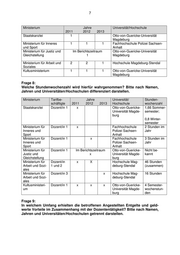 4 Ministerium Beamtinnen Jahre Universität/ Stunden- und Beamte 2011 2012 2013 Hochschule wochenzahl Inneres und Polizei Sachsen- Jahr Sport Anhalt Ministerium für Dozent/in 9 x Fachhochschule 28 Stunden im Inneres und Polizei Sachsen- Jahr Sport Anhalt Ministerium für Dozent/in 1 Im Berichtszeitraum Hochschule Nicht bekannt Justiz und x Magdeburg- Gleichstellung Stendal Ministerium für Dozent/in 2 Im Berichtszeitraum Hochschule Nicht bekannt Justiz und x Magdeburg- Gleichstellung Stendal Ministerium für Dozent/in 1 x Hochschule 22 Stunden Arbeit und So- Anhalt ziales Ministerium für Dozent/in 1 x Hochschule 25 Stunden Arbeit und So- Anhalt ziales Ministerium für Dozent/in 1 x Hochschule 26 Stunden Arbeit und So- Anhalt ziales Ministerium für Dozent/in 2 x Hochschule 3 Stunden Arbeit und So- Magdeburg- ziales Stendal Ministerium für Dozent/in 2 x Hochschule 32 Stunden Arbeit und So- Magdeburg- ziales Stendal Ministerium für Dozent/in x Hochschule 39 Stunden Arbeit und So- 3 und 4 Magdeburg- (zusammen) ziales Stendal Kultusministe- Dozent/in 1 x x Otto-von- 2 Semester- rium Guericke-Univer- wochenstunden sität Magdeburg Ministerium für Dozent/in 1 x Hochschule Harz 5 bzw. 8 Se- Wissenschaft mesterwo- und Wirtschaft chenstunden Ministerium für Dozent/in 1 x Hochschule Harz 6 Semester- Wissenschaft wochenstunden und Wirtschaft Ministerium für Dozent/in 1 x Hochschule Harz 8 Semester- Wissenschaft wochenstunden und Wirtschaft Ministerium für Dozent/in 2 x Hochschule Harz 6 Semester- Wissenschaft wochenstunden und Wirtschaft Ministerium für Dozent/in 2 x Hochschule Harz 2 bzw. 8 Se- Wissenschaft mesterwo- und Wirtschaft chenstunden Ministerium für Dozent/in 2 x Hochschule Harz 4 Semester- Wissenschaft wochenstunden und Wirtschaft Ministerium für Dozent/in 2 x x Hochschule 4 Semester- Wissenschaft Merseburg wochenstunden und Wirtschaft