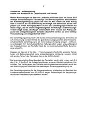 Landtag von Sachsen-Anhalt Drucksache 6/4110 01.06.2015 Antwort der Landesregierung auf eine Kleine Anfrage zur schrift- lichen Beantwortung Abgeordnete Dorothea Frederking (BÜNDNIS 90/DIE GRÜNEN) Nachfrage zu den Antworten der Landesregierung in der Drucksache 6/3964: Auswirkungen des Tierhaltungsverbotes gegen die Firma GLAVA GmbH auf ih- ren Antrag vom 15. Februar 2013 zur Erweiterung der Anlage zum Betrieb von 52.889 Tierplätzen zur reinen Ferkelproduktion Kleine Anfrage - KA 6/8776 Vorbemerkung des Fragestellenden: In der Antwort auf meine Kleine Anfrage (Drucksache 6/3964) teilt die Landesregie- rung mit, das Tierhaltungs- und Betreuungsverbot habe keinen Einfluss auf laufende immissionsschutzrechtliche Verfahren zur Anlagenerweiterung. Weiterhin teilte die Landesregierung mit, die immissionsschutzrechtliche Genehmigung sei als reine Sachgenehmigung anlagen-, nicht personenbezogen. Ferner informiert die Landesregierung in der Antwort zur Frage 2: „Das personenbe- zogene Tierhaltungs- und Betreuungsverbot begründet keine Ablehnung des Ge- nehmigungsantrages nach BImSchG für die Anlagenerweiterung.“ Allerdings wurde in der Drucksache 6/3964 nicht nach dem personengebundenen Tierhaltungs- und Betreuungsverbot gegen den Schweinezüchter Adrianus Straathof gefragt, welches Ende November 2014 verhängt wurde. Gefragt wurde nach den Auswirkungen des im Januar 2015 verfügten Tierhaltungs- und Betreuungsverbots einschließlich der Ausstallungsverfügung gegenüber der GLAVA GmbH. Hierbei handelt es sich um kein personenbezogenes, sondern um ein anlagenbezogenes Tierhaltungs- und Betreuungsverbot. (Ausgegeben am 02.06.2015)