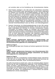 5 und verzichten daher auf die Erschließung des US-amerikanischen Marktes. 2. Viele Produkte unterliegen in den USA neben den zollrechtlichen Vorschriften weiteren Einfuhrverboten sowie -beschränkungen und sind insofern Gegenstand von Gesetzen und Vorschriften der US-Regierungsstellen, mit denen die CBP (bureau of customs and border protection) zusammenarbeitet. Diese Gesetze und Vorschriften können z. B. die Einfuhr verbieten, den Import auf bestimmte Einfuhrorte begrenzen, die Beförderung, Lagerung oder Verwendung beschrän- ken oder eine Zulassung, Behandlung, Etikettierung oder Verarbeitung als Be- dingung für eine Freigabe bestimmter Waren fordern. Weitere Einfuhrbeschrän- kungen und -verbote ergeben sich aus spezifischen Vorschriften, z. B. über Ha- fennutzung, Transport, Lagerung, Verwendung oder Kennzeichnung, ferner aus nationalen Sicherheitsinteressen sowie aus Schutz- und Antidumpinggesetzen. 3. Deutsche Unternehmen, die Außenhandelsbeziehungen mit den USA unterhal- ten, sind vom US-(Re)Exportkontrollrecht betroffen, da die USA von einer welt- weiten Zuständigkeit ihrer Behörden für Kontrollen amerikanischer Produkte, Technologien und Software ausgehen. So unterliegen nach amerikanischem Verständnis fast alle US-Güter in Deutschland und deren Wiederausfuhr in Dritt- staaten sowie deutsche Produkte mit kontrollierten amerikanischen Bestandteilen (i.d.R. ab einem bestimmten Prozentsatz) oder integriertem amerikanischen Know-how den amerikanischen Bestimmungen. Dieses hochkomplexe Thema stellt für deutsche Unternehmen eine große Herausforderung dar. Frage 5: Welche konkreten regulatorischen Hemmnisse in Sachsen-Anhalts und Deutschlands Wirtschafts-, Sozial- und Rechtsordnung beklagen die USA bzw. US-Wirtschaftsvertreter gegenüber der Landesregierung? Antwort zu Frage 5: Der Landesregierung liegen keine Hinweise auf konkrete regulatorische Hemmnisse vor. Frage 6: Welche konkreten regulatorischen Hemmnisse in der US-amerikanischen Wirt- schafts-, Sozial- und Rechtsordnung beklagen Unternehmen aus Sachsen- Anhalt gegenüber der Landesregierung? Antwort zu Frage 6: Aufgrund der noch eher zurückhaltenden Investitionstätigkeit hiesiger Unternehmen in den USA sind nur wenige Klagen über konkrete regulatorische Hemmnisse der US-amerikanischen Wirtschafts-, Sozial- und Rechtsordnung bekannt. Die größte Herausforderung besteht darin, neben den landesweit gültigen Gesetzen Kenntnis über die vielen einzelstaatlichen Regelungen in den US-Bundesstaaten zu Arbeits- und Steuer-, sowie Wirtschaftsrecht zu erlangen. Der Aufwand, im Vorfeld der Gründung einer Niederlassung für die Standortentscheidung alle Faktoren zu be- rücksichtigen, ist hoch. Jedoch erhalten die Unternehmen diesbezüglich Unterstüt- zung durch die Industrie- und Handelskammern in Sachsen-Anhalt, die Auslands- handelskammern und die Landesregierung.