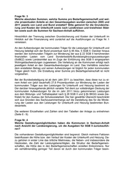 4 Frage Nr. 3 Welche absoluten Summen, welche Summe pro Bedarfsgemeinschaft und wel- che prozentualen Anteile an den Gesamtausgaben wurden zwischen 2005 und 2011 jeweils von Land und Bund erstattet? Bitte getrennt für die Grundsiche- rung und Kosten der Unterkunft sowie nach Landkreisen und kreisfreien Städ- ten sowie auch die Summen für Sachsen-Anhalt aufführen. Hinsichtlich der Trennung zwischen Grundsicherung und Kosten der Unterkunft im Hinblick auf die Finanzierung wird zunächst auf die Ausführungen zu Frage Nr. 1 verwiesen. An den Aufwendungen der kommunalen Träger für die Leistungen für Unterkunft und Heizung beteiligt sich der Bund prozentual nach § 46 Abs. 5 SGB II. Darüber hinaus werden den kommunalen Trägern zur Minderung der aus § 22 SGB II herrührenden finanziellen Lasten vom Land Sonderbedarfs-Bundesergänzungszuweisungen (SoBEZ) sowie Landesmittel aus im Zuge der Einführung des SGB II eingesparten Wohngeldaufwendungen zugewiesen. Die Verteilung an die Kommunen erfolgt nach jeweiligem Anteil an den Gesamtaufwendungen im Land. Das Verhältnis zwischen dem erstatteten Betrag und seinen Aufwendungen ist folglich für jeden kommunalen Träger gleich hoch. Die Erstattung einer Summe pro Bedarfsgemeinschaft ist nicht vorgesehen. Bei der Bundesbeteiligung ist ab dem Jahr 2011 zu beachten, dass diese nur zu ei- nem Anteil von (jetzt dauerhaft) 27,6 Prozentpunkten zur Minderung der Lasten der kommunalen Träger aus den Leistungen für Unterkunft und Heizung bestimmt ist. Der darüber hinausgehende jährlich variable Teil dient zur vollständigen Deckung der kommunalen Aufwendungen für die im Jahr 2011 hinzu gekommenen Leistungen aus dem Bildungs- und Teilhabepaket nach § 28 SGB II und § 6b BKGG sowie (be- fristet) für den Ausbau der Schulsozialarbeit. Die hier gewählte Übersicht beschränkt sich aus Gründen des Sachzusammenhangs auf die Darstellung des für die Minde- rung der Lasten aus den Leistungen für Unterkunft und Heizung bestimmten Bun- desanteils. Die weiteren Einzelheiten und Zahlen sind den Tabellen der Anlage zu entnehmen (Seite 6 - 9). Frage Nr. 4 Welche Gestaltungsmöglichkeiten haben die Kommunen in Sachsen-Anhalt nach Ansicht der Landesregierung, um die Ausgaben für SGB II zurückzufüh- ren? Die vorhandenen Gestaltungsmöglichkeiten sind begrenzt. Gleich mehrere Faktoren beeinflussen die Höhe bzw. den Verlauf der Kosten der Unterkunft und Heizung. Da- zu gehören in erster Linie das örtliche Mietniveau, die Neben- und insbesondere die Heizkosten, die Zahl der Leistungsberechtigten, die Struktur der Bedarfsgemein- schaften, die Höhe des in den Bedarfsgemeinschaften erzielten Einkommens. Nur ein verhältnismäßig geringer Teil davon ist durch den kommunalen Träger beein-