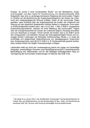 5 1 flussbar. So wurde in einer bundesweiten Studie von der Beraterfirma „Analy- se & Konzepte“ und dem Institut für Sozialforschung und Gesellschaftspolitik (ISG) festgestellt, dass eine zu großzügig bemessene Regelung des kommunalen Trägers im Hinblick auf die Bestimmung der Angemessenheitsgrenze der Kosten der Unter- kunft eine mietpreissteigernde Wirkung entfaltet. Daher ist der kommunale Träger gehalten, seine Richtlinie über die Angemessenheit der Kosten der Unterkunft und Heizung auf den tatsächlich bestehenden örtlichen Bedarf zu begrenzen. Eine weite- re Einflussmöglichkeit besteht darin, das in § 22 Abs. 1 Satz 3 SGB II vorgesehene Kostensenkungsverfahren, welches mit einer Mitteilung des kommunalen Trägers über die Unangemessenheit der Kosten der Unterkunft beginnt, frühzeitig einzuleiten und zum Abschluss zu bringen. Ferner können die Kosten nach § 22 SGB II durch den konsequenten und zeitnahen Verweis der leistungsberechtigten Person auf vor- rangige (Sozial-) Leistungen wie Wohngeld, Kinderzuschlag, Renten u. ä. sowie die kurzfristige und zielgerichtete Geltendmachung von übergegangenen Ansprüchen bzw. Ersatzansprüchen nach §§ 33 ff. SGB II (z. B. Kindesunterhalt) gesenkt werden. Dazu müssen freilich die nötigen Voraussetzungen vorliegen. Letztendlich stellt aus Sicht der Landesregierung jedoch die zügige und nachhaltige Integration erwerbsfähiger Personen einer Bedarfsgemeinschaft in bedarfsdeckende Beschäftigung den effizientesten und für alle Beteiligte befriedigendsten Weg zur Verringerung der kommunalen Aufwendungen im Rahmen des SGB II dar. 1 Die Studie ist im Januar 2010 in der Schriftenreihe "Forschungen" des Bundesministeriums für Verkehr, Bau und Stadtentwicklung und des Bundesinstituts für Bau-, Stadt- und Raumforschung erschienen (Heft 142). Sie kann unter forschung.wohnen@bbr.bund.de bestellt werden.