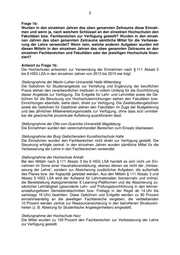 2 Frage 1b: Wurden in den einzelnen Jahren des oben genannten Zeitraums diese Einnah- men und wenn ja, nach welchem Schlüssel an den einzelnen Hochschulen den Fakultäten bzw. Fachbereichen zur Verfügung gestellt? Wurden in den einzel- nen Jahren des oben genannten Zeitraums sämtliche Mittel für die Verbesse- rung der Lehre verwendet? Wenn nein, welche anderen Aufgaben wurden mit diesen Mitteln in den einzelnen Jahren des oben genannten Zeitraums an den einzelnen Fachbereichen und Fakultäten oder der jeweiligen Hochschule finan- ziert? Antwort zu Frage 1b: Die Hochschulen antworten zur Verwendung der Einnahmen nach § 111 Absatz 3 bis 6 HSG LSA in den einzelnen Jahren von 2013 bis 2015 wie folgt: Stellungnahme der Martin-Luther-Universität Halle-Wittenberg Die Gebühren für Studienangebote zur Vertiefung und Ergänzung der beruflichen Praxis stehen den verantwortlichen Instituten in vollem Umfang für die Durchführung dieser Angebote zur Verfügung. Die Entgelte für Lehr- und Lernmittel sowie die Ge- bühren für die Benutzung von Hochschuleinrichtungen stehen den Fakultäten bzw. Einrichtungen ebenfalls, siehe oben, direkt zur Verfügung. Die Zweitstudiengebühren sowie die Gebühren für Gasthörer stehen den Fakultäten im Zuge der Budgetierung und des jährlichen Mittelverteilungsmodells zur Verfügung, ohne dass sich unmittel- bar die gewünschte prozentuale Aufteilung quantifizieren lässt. Stellungnahme der Otto-von-Guericke-Universität Magdeburg Die Einnahmen wurden den vereinnahmenden Bereichen zum Einsatz überlassen. Stellungnahme der Burg Giebichenstein Kunsthochschule Halle Die Einnahmen wurden den Fachbereichen nicht direkt zur Verfügung gestellt. Die Steuerung erfolgte zentral. In den einzelnen Jahren wurden sämtliche Mittel für die Verbesserung der Lehre in den Fachbereichen verwendet. Stellungnahme der Hochschule Anhalt Bei den Mitteln nach § 111 Absatz 3 bis 6 HSG LSA handelt es sich nicht um Ein- nahmen im Sinne einer Haushaltsverstärkung, ebenso dienen sie nicht der „Verbes- serung der Lehre“, sondern zur Absicherung zusätzlicher Aufgaben, die außerhalb des Planes bzw. der Kapazität geleistet werden. Aus den Mitteln § 111 Absatz 3 und Absatz 5 HSG LSA wird der Aufwand für Lehrmaterialien (konservativ und online), die Bereitstellung dialogorientierter E-Learning-Plattformen und die Absicherung zu- sätzlicher Lehrtätigkeit (gesonderte Lehr- und Prüfungsdurchführung in den lehrver- anstaltungsfreien Semesterabschnitten bzw. Freitags in der Regel ab 14 Uhr bis samstags 16 Uhr) bestritten. Diese Gebühren und Entgelte werden zu 90 Prozent einnahmeanteilig an die jeweiligen Fachbereiche vergeben, die verbleibenden 10 Prozent werden zentral zur Ressourcensicherung in den betroffenen Strukturein- heiten (z. B. Abteilung für Studentische Angelegenheiten) eingestellt. Stellungnahme der Hochschule Harz Die Mittel wurden zu 100 Prozent den Fachbereichen zur Verbesserung der Lehre zur Verfügung gestellt.