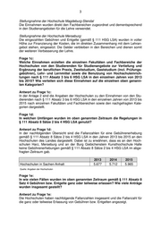 Ministerium für Wirtschaft, Wissenschaft Anlage 1 und Digitalisierung des Landes Sachsen-Anhalt 2013 2014 2015 (in Euro) (in Euro) (in Euro) Hochschule Merseburg 163.338 393.670 345.975 Vertiefung und Ergänzung der beruflichen Praxis 152.675 383.320 336.800 Zweitstudium - - - Gaststudium (incl. Prüfungsgebühren) 1.688 800 - Lehr- und Lernmittel 8.975 9.550 9.175 Benutzung Hochschuleinrichtungen - - - *) Entgelte für Lehr- und Lernmittel sowie Gebühren für die Benutzung von Hochschuleinrichtungen werden, soweit diese erhoben werden, dezentral von den jeweiligen Fakultäten und Einrichtungen selbst eingenommen. Diese lassen sich anhand der Buchungen nicht gesondert ausweisen, stehen aber den Fakultäten bzw. Einrichtungen selbst unmittelbar zur Verfügung. **) Die Hochschule erfasst die Kategorien Vertiefung und Ergänzung der berufliche Praxis sowie Zweitstudium nicht getrennt. Quelle: Angaben der Hochschulen Seite 2/2