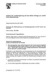 Sicherung der Kofinanzierung von Bundesprogrammen ab 2017 durch Landesmittel