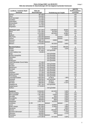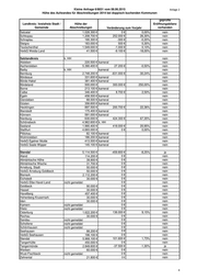 Kleine Anfrage 6/8831 vom 08.06.2015 Anlage 2 Höhe des Aufwandes für Abschreibungen 2014 bei doppisch buchenden Kommunen geprüfte Landkreis / kreisfreie Stadt / Höhe der Eröffnungsbilanz Gemeinde Abschreibungen Veränderung zum Vorjahr vorhanden Westheide 257.100 € nein Wolmirstedt 0€ nein Zielitz 599.500 € nein VerbG Elbe-Heide 47.400 € nein VerbG Flechtingen 77.900 € nein VerbG Obere Aller 317.900 € nein VerbG Westliche Börde 153.100 € nein Burgenlandkreis 9.657.800 € 915.500 € 10,47% nein VerbG An der Finne 703.800 € 60.100 € 8,54% nein An der Poststraße 227.900 € 17.100 € 7,50% nein Bad Bibra 285.100 € -7.000 € -2,46% nein Eckartsberga 342.500 € -15.300 € -4,47% nein Finne 147.000 € 2.700 € 1,84% nein Finneland 98.400 € -21.100 € -21,44% nein Kaiserpfalz 205.900 € -23.500 € -11,41% ja Lanitz-Hassel-Tal 194.800 € -37.400 € -19,20% nein VerbG Droyßiger-Zeitzer-Forst 224.800 € 57.300 € 25,49% nein Droyßig 77.100 € kein HH 2013 nein Gutenborn 68.700 € kein HH 2013 nein Kretzschau 95.000 € kein HH 2013 nein Wetterzeube kein HH 2014 kein HH 2013 nein Schnaudertal 24.200 € kein HH 2013 nein Elsteraue 1.041.900 € -158.100 € -15,17% nein Hohenmölsen 2.012.200 € 44.200 € 2,20% ja Lützen 1.506.300 € 1.348.400 € 89,52% nein Naumburg 3.803.000 € 57.400 € 1,51% ja VerbG Unstruttal 243.400 € 5.100 € 2,10% nein Balgstädt 106.100 € 97.300 € 91,71% nein Freyburg 553.000 € 61.900 € 11,19% nein Goseck 158.200 € -21.300 € -13,46% nein Gleina 169.200 € 3.400 € 2,01% nein Karsdorf 194.300 € -5.000 € -2,57% nein Laucha 311.500 € 10.400 € 3,34% nein Nebra 359.400 € 98.300 € 27,35% nein Teuchern 431.900 € -10.200 € -2,36% nein Weißenfels 4.412.700 € -2.100 € -0,05% nein VerbG Wethautal 533.300 € kameral nein Meineweh 516.200 € kameral nein Mertendorf 517.400 € kameral nein Molauer Land 380.500 € kameral nein Osterfeld 613.700 € kameral nein Schönburg 407.600 € kameral nein Stößen 203.700 € kameral nein Wethau 267.800 € kameral nein Zeitz 4.845.200 € 0€ 0,00% nein Harz 8.292.400 € 591.500 € 7,68% nein Ballenstedt n.b. nein Blankenburg 910.900 € nein Falkenstein 1.318.400 € nein Halberstadt 6.659.700 € ja Harzgerode 1.160.300 € nein Huy n.b. nein Ilsenburg 1.188.500 € nein Nordharz 720.800 € nein Oberharz am Brocken 1.668.900 € nein Osterwieck 1.355.000 € nein Quedlinburg 2.867.500 € nein Thale 2.509.400 € nein Wernigerode 4.425.800 € nein 2