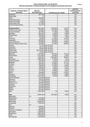 Kleine Anfrage 6/8831 vom 08.06.2015 Anlage 2 Höhe des Aufwandes für Abschreibungen 2014 bei doppisch buchenden Kommunen geprüfte Landkreis / kreisfreie Stadt / Höhe der Eröffnungsbilanz Gemeinde Abschreibungen Veränderung zum Vorjahr vorhanden absolut relativ Altmarkkreis Salzwedel 4.054.300 € 292.300 € 7,70% ja Arendsee 310.700 € 700 € 0,23% nein Kalbe 485.100 € kameral nein Klötze 1.449.800 € 600 € 0,05% nein Hansestadt Gardelegen kameral kameral nein Hansestadt Salzwedel 2.983.200 € kameral nein VerbG Beetzendorf-Diesdorf kameral nein Apenburg-Winterfeld kameral nein Beetzendorf kameral nein Dähre kameral nein Diesdorf kameral nein Jübar kameral nein Kuhflelde kameral nein Rohrberg kameral nein Wallstawe kameral nein Anhalt-Bitterfeld 6.029.500 € 465.000 € 8,37% nein Aken 1.741.000 € 251.600 € 14,45% ja Bitterfeld-Wolfen 7.325.300 € 223.300 € 3,05% ja Köthen 3.921.700 € 175.079 € 4,46% nein Muldestausee 1.372.700 € 99.516 € 7,25% nein Osternienburger Land 1.771.400 € 37.300 € 2,11% ja Raguhn-Jeßnitz 969.700 € kameral kameral nein Sandersorf-Brehna 2.839.000 € 283.950 € 10,00% nein Südliches Anhalt 1.491.500 € -882.300 € -59,16% nein Zerbst kameral kameral kameral nein Zörbig 2.060.400 € 0€ 0,00% ja Bördekreis 3.765.100 € 165.200 € 4,59% nein Altenhausen 175.800 € nein Am Großen Bruch 267.000 € nein Angern 482.900 € nein Ausleben 258.700 € nein Barleben 2.108.600 € -88.100 € -4,01% ja Beendorf 155.900 € nein Bülstringen 130.000 € nein Burgstall 396.200 € 5.000 € 1,28% ja Calvörde 528.400 € nein Colbitz 480.100 € nein Eilsleben 626.000 € nein Erxleben 564.700 € nein Flechtingen 572.300 € nein Gröningen 263.600 € nein Haldensleben 3.226.500 € 216.500 € 7,19% ja Harbke 308.500 € nein Hohe Börde 2.555.800 € ja Hötensleben 652.600 € nein Ingersleben 225.000 € nein Kroppenstedt 197.600 € nein Loitsche-Heinrichsberg 264.000 € nein Niedere Börde 846.500 € nein Oebisfelde-Weferlingen 1.816.100 € nein Oscherleben (Bode) 3.385.800 € -41.700 € -1,22% ja Rogätz 444.800 € nein Sommersdorf 204.800 € nein Sülzetal 1.559.900 € nein Ummendorf 131.400 € nein Völpke 305.200 € nein Stadt Wanzleben-Börde 2.761.500 € nein Wefensleben 206.900 € nein 1