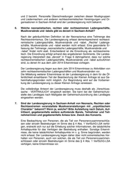 Landtag von Sachsen-Anhalt Drucksache 6/3923 25.03.2015 Antwort der Landesregierung auf eine Kleine Anfrage zur schrift- lichen Beantwortung Abgeordnete Henriette Quade (DIE LINKE) Abgeordneter Sebastian Striegel (BÜNDNIS 90/DIE GRÜNEN) Neonazistische Musikszene, Konzerte, Versand- und Ladengeschäfte in Sach- sen-Anhalt Kleine Anfrage - KA 6/8682 Antwort der Landesregierung erstellt vom Ministerium für Inneres und Sport Namens der Landesregierung beantworte ich die Kleine Anfrage wie folgt: Vorbemerkung: Zwar ist der parlamentarische Informationsanspruch grundsätzlich auf die Beantwor- tung gestellter Fragen in der Öffentlichkeit angelegt. Die Landesregierung trifft aber eine Schutzpflicht gegenüber ihren nachrichtendienstlichen Quellen. Teile der Ant- wort der Landesregierung müssen insoweit als „Verschlusssache - Vertraulich“ ein- gestuft werden. Hierbei wird der Rechtsprechung des Landesverfassungsgerichts Sachsen-Anhalt gefolgt, nach der bei der Erfüllung der Auskunftsverpflichtung ge- genüber dem Parlament unter Geheimhaltungsaspekten wirksame Vorkehrungen gegen das Bekanntwerden von Dienstgeheimnissen mit einbezogen werden können (vgl. Landesverfassungsgericht Sachsen-Anhalt, Urteil vom 17. September 2013, Az.: LVG 14/12). Hierzu zählt auch die Geheimschutzordnung des Landtages (GSO- LT). Die Einstufung als Verschlusssache ist im vorliegenden Fall im Hinblick auf das Wohl des Landes Sachsen-Anhalt und die schutzwürdigen Interessen Dritter geeig- net, das Informationsinteresse des Parlaments unter Wahrung berechtigter Geheim- Hinweise: Die Drucksache steht vollständig digital im Internet/Intranet zur Verfügung. Die Anlage ist in Word als Objekt beigefügt und öffnet durch Doppelklick den Acrobat Reader. Bei Bedarf kann Einsichtnahme in der Bibliothek des Landtages von Sachsen-Anhalt er- folgen oder die gedruckte Form abgefordert werden. Die Antwort wurde dem Fragesteller mit der Maßgabe übermittelt, § 33 GSO LT zu be- achten. Eine Einsichtnahme o. g. Antwort ist für Abgeordnete in der Landtagsverwal- tung - Geheimschutzstelle - möglich. (Ausgegeben am 27.03.2015)