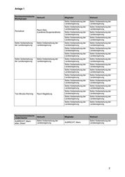 Anlage 1 Rechtsextremistische Herkunft Mitglieder Wohnort Musikgruppe Siehe Vorbemerkung der Siehe Vorbemerkung der Landesregierung Landesregierung Siehe Vorbemerkung der Siehe Vorbemerkung der Landesregierung Landesregierung Raum Zeitz, Permafrost (Landkreis Burgenlandkreis) Siehe Vorbemerkung der Siehe Vorbemerkung der Landesregierung Landesregierung Siehe Vorbemerkung der Siehe Vorbemerkung der Landesregierung Landesregierung Siehe Vorbemerkung Siehe Vorbemerkung der Siehe Vorbemerkung der Siehe Vorbemerkung der der Landesregierung Landesregierung Landesregierung Landesregierung Siehe Vorbemerkung der Siehe Vorbemerkung der Landesregierung Landesregierung Siehe Vorbemerkung der Siehe Vorbemerkung der Landesregierung Landesregierung Siehe Vorbemerkung Siehe Vorbemerkung der Siehe Vorbemerkung der Siehe Vorbemerkung der der Landesregierung Landesregierung Landesregierung Landesregierung Siehe Vorbemerkung der Siehe Vorbemerkung der Landesregierung Landesregierung Siehe Vorbemerkung der Siehe Vorbemerkung der Landesregierung Landesregierung Siehe Vorbemerkung der Siehe Vorbemerkung der Landesregierung Landesregierung Siehe Vorbemerkung der Siehe Vorbemerkung der Landesregierung Landesregierung Siehe Vorbemerkung der Siehe Vorbemerkung der Landesregierung Landesregierung Siehe Vorbemerkung der Siehe Vorbemerkung der Two Minutes Warning Raum Magdeburg Landesregierung Landesregierung Siehe Vorbemerkung der Siehe Vorbemerkung der Landesregierung Landesregierung Siehe Vorbemerkung der Siehe Vorbemerkung der Landesregierung Landesregierung Rechtsextremistische Herkunft Mitglieder Wohnort Liedermacher ALBRECHT, Mario Siehe Vorbemerkung der Siehe Vorbemerkung der Landesregierung ALBRECHT, Mario Landesregierung alias „Oiram“ 2