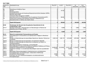 KA 7/1854 Kapitel/TGr./ Zweckbestimmung Plan 2017 Ist 2017 Plan 2018 Ist V-Ist Titel 30.06.2018 31.12.2018 511 01 Geschäftsbedarf und Kommunikation sowie Geräte, Ausstattungs- und 342.900 367.683 350.800 112.852 350.800 Ausrüstungsgegenstände, sonstige Gebrauchsgegenstände 514 01 Verbrauchsmittel, Haltung von Fahrzeugen 178.100 158.029 178.100 68.788 178.100 514 03 Dienst- und Schutzkleidung 4.400 7.597 4.700 565 4.700 514 04 Kleingeräte 3.600 3.204 3.600 756 3.600 514 05 Labor- und Fotobedarf 1.100 241 1.200 0 1.200 514 06 Arzneimittel 700 214 700 17 700 514 08 Dienst- und Schutzkleidungszuschüsse, Kleidergeld und Einkleidungshilfen 3.200 3.837 3.200 1.900 3.200 514 09 Entschädigung für entnommene Lebensmittelproben 0 0 0 0 0 517 01 Bewirtschaftung der Grundstücke, Gebäude und Räume 299.300 272.284 304.200 136.405 304.200 517 30 Bewirtschaftung der Grundstücke, Gebäude und Räume durch BLSA 178.800 91.063 178.800 89.402 178.800 518 01 Mieten und Pachten 549.800 547.128 556.800 310.176 556.800 518 13 Miete oder private Vorfinanzierung (z.B. Leasing) von Dienstkraftfahrzeugen 192.800 175.344 201.900 95.225 201.900 518 30 Mietzahlungen an BLSA 626.800 626.716 626.800 313.358 626.800 519 01 Unterhaltung der Grundstücke und baulichen Anlagen 28.000 29.311 26.300 9.532 26.300 525 01 Aus- und Fortbildung 21.000 14.462 21.000 4.056 21.000 525 02 Lehrmittel 1.600 675 1.000 250 1.000 526 01 Gerichts- und ähnliche Kosten 45.000 20.290 44.000 33.391 44.000 526 02 Sachverständige 22.000 18.732 22.000 7.993 22.000 526 05 Entschädigungen 8.000 6.294 8.000 3.409 8.000 527 01 Reisekostenvergütungen für Dienstreisen 31.900 19.888 31.900 7.614 31.900 527 03 Reisekostenvergütungen für Reisen in Angelegenheiten der Personalvertretung und 800 89 800 228 800 der Schwerbehindertenvertretung 531 01 Veröffentlichungen 46.100 26.584 48.300 9.098 48.300 533 01 Dienstleistungen Außenstehender für die Flurneuordnungsbehörden 5.800.000 4.782.780 5.800.000 405.146 5.800.000 533 02 Dienstleistungen Außenstehender 2.700 0 2.700 0 2.700 533 03 Dienstleistungen Außenstehender - Nicht EU-förderfähige Mehrwertsteuer im 0 0 0 0 0 Rahmen der Förderung der Flurbereinigung 533 04 Dienstleistungen Außenstehender für Gesundheitsmanagement 1.500 1.123 1.500 741 1.500 534 01 Sachaufwand der Ausbildung, Fortbildung und Prüfung 1.000 918 1.000 647 1.000 535 01 Unterhaltung der Geräte für Fachaufgaben 10.800 2.910 11.700 107 11.700 535 02 Ersatz und Ergänzung der Geräte für Fachaufgaben 17.300 6.551 10.200 0 10.200 536 01 Umzug und Verlegung von Dienststellen 35.700 0 0 0 0 547 01 Vermischte Verwaltungsausgaben 1.900 964 1.900 812 1.900 681 01 Schadensersatzleistungen und Unfallentschädigungen 0 4.143 0 2.514 0 811 01 Erwerb von Dienstkraftfahrzeugen 71.000 69.361 20.200 0 20.200 812 13 Erwerb landeseigener Fernmeldeanlagen 0 0 0 0 0 812 15 Erwerb von Geräten, Ausstattungs- und Ausrüstungsgegenständen 55.400 55.303 44.200 0 44.200 G:\Abteilung1\Referat13\Haushaltsführung\2018\Kleine Anfrage AfD 7_1854 Mittelabfluss Epl. 09\Mittelabfluss Epl. 09.xlsx Seite 7 von 11