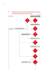 78 E. Detaillierte Prozessdarstellung und Prozessdauer der Rückführung Prozessschritt Ist-Prozess Entscheidung Asylantrag Prüfung Asylantrag (inkl. Abschiebungs- verboten) Beschaffung PEP1 oder sonst. Reisedokumente Rücknahme oder Einstellung Asylantrag Ablehnung, Frist freiwillige Ausreise2 und Abschiebungsandrohung Nein Klage/ Eilantrag? Ja Klage/ Eilantrag erfolg- reich? Menschen ohne Aufenthaltstitel • Aufenthaltstitel abgelaufen • Aufenthaltstitel widerrufen • Aufenthaltstitel nie besessen Ausreisepflicht vollziehbar Fristablauf (Abschiebung vollziehbar) Meldung durch ABH Prüfung Flucht- gefahr, ggf. Abschiebungshaft Ja Ja Nein Vollziehbarkeitsmitteilung an ABH Abschie- bungs- hindernisse geltend gemacht? Asyl-/ Folge- antrag? Nein Nein Ja Prüfung Abschiebungshindernisse Duldung Nach Ablauf Duldung: neue Prüfung Ja Abschiebungs- hindernisse vorliegend? Nein Nein PEP1 voraus- sichtlich beschaff- bar? Ja Vorübergehend Ausreisemodalitäten 1 Passersatzpapier 2 Im Regelfall 7 - 30 Tage, kann im Einzelfall verkürzt werden 3 D.h. Asyl, Flüchtlingsschutz, subsidiärer Schutz oder Abschiebungsverbot nach § 60 Abs. 5 und 7 AufenthG Positiver Bescheid3
