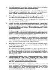 2 2. Welche Einsparungen können zum aktuellen Zeitpunkt durch die Landes- regierung festgestellt werden? Bitte detailliert darstellen. Die JVA Burg hat ihren Regelbetrieb zum 1. November 2009 aufgenommen. Die bisherige Zeit im Regelbetrieb ist daher noch zu kurz, um jetzt schon end- gültige Aussagen über festgestellte Einsparungen treffen zu können. 3. Welche Einsparungen erwartet die Landesregierung bis zum Ende des Vertrages mit der Betreibergesellschaft? Bitte detailliert darstellen. Auch hierzu können aufgrund der erst kurzen Betriebszeit des Projektes zurzeit noch keine Aussagen getroffen werden. 4. Für den Fall, dass - analog der Prüfungsergebnisse wie in Baden-Würt- temberg - nur minimale Einsparungseffekte festgestellt werden, würde die Landesregierung einen ähnlichen Weg einschlagen und entsprechende Konsequenzen ziehen, wie nunmehr von der Landesregierung in Baden- Württemberg geplant? Die Entscheidung in Baden-Württemberg beruht, soweit ersichtlich, vor dem Hintergrund von Prüfungsergebnissen des Landesrechnungshofs Baden-Würt- temberg, auf einer übereinstimmenden politischen Willenserklärung der die dor- tige neue Landesregierung tragenden Koalitionsparteien. Die Landesregierung wird ebenfalls vor dem Hintergrund des Ergebnisses der laufenden Prüfung des Landesrechnungshofes und weiterer eigener Erkennt- nisse und Bewertungen aus dem laufenden Betrieb prüfen, ob und inwieweit die zeitlich befristeten Dienstleistungsverträge fortgesetzt werden. 5. Welche Verträge könnten dann zu welchem Zeitpunkt gekündigt werden, um die Privatisierung rückgängig zu machen? Entstünden dadurch Mehr- kosten bzw. Einsparungen? Bis auf den Vertrag zur Gebäudebewirtschaftung könnten alle übrigen Dienst- leistungsverträge erstmalig nach fünf Jahren zum 30. April 2014 gekündigt wer- den. Welche Einsparungen oder Mehrkosten durch eine Kündigung entstünden, kann erst zu dem Zeitpunkt ermittelt werden, in dem eine Kündigung konkret in Betracht gezogen würde. 6. Plant die Landesregierung weitere Privatisierungsmaßnahmen in Justiz- vollzugsanstalten des Landes? Falls ja, in welcher Form? Gibt es Absich- ten seitens der Landesregierung, künftig mittels Privatisierungsmaßnah- men auch in den hoheitlichen Bereich einzugreifen? Bitte nach JVA, Standort und Leistungsart darstellen. Weitere Privatisierungsmaßnahmen in Justizvollzugsanstalten des Landes sind derzeit nicht geplant. Im Übrigen können im Rahmen eines PPP-Projektes nur solche Leistungen durch die Betreibergesellschaft erbracht werden, die keine hoheitlichen Aufgaben darstellen, wobei das Land die Kontrolle auch über die privatwirtschaftlich erbrachten Dienstleistungen behält.