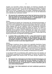 Landtag von Sachsen-Anhalt Drucksache 7/3304 28.08.2018 Antwort der Landesregierung auf eine Kleine Anfrage zur schrift- lichen Beantwortung Abgeordnete Christina Buchheim (DIE LINKE) Stand der Sanierung und Ausbau der Deiche, ergänzender Hochwasserschutz Kleine Anfrage - KA 7/1875 Vorbemerkung des Fragestellenden: Nach den Jahrhunderthochwassern 2002 und 2013 gab es erhebliche Anstrengun- gen an den Flüssen Sachsen-Anhalts, Deiche zu sanieren und auszubauen, um den Schutz bei Hochwasserereignissen zu verbessern. Unter der Überschrift „Kombination von Deich und Polder“ berichtete die Volksstim- me im Dezember 2017, dass es aus Sicht der Umweltministerin auch wichtig ist, den Flüssen mehr Raum zu geben und Deiche zurückzuverlegen, um Überschwem- mungsflächen zu schaffen. Bei Bedarf sollen auch Polder (Rückhaltebecken) geflutet werden, um so den Wasserstand von Flüssen gezielt zu senken. Antwort der Landesregierung erstellt vom Ministerium für Umwelt, Landwirtschaft und Energie 1. In welcher Höhe wurden Mittel seit dem 1. Januar 2013 jeweils für welche Maßnahme der Sanierung und des Ausbaues der Deiche in jeweils wel- cher Gemeinde Sachsen-Anhalts investiert? Wann wurde jeweils welche dieser Maßnahmen begonnen und wann wurde diese abgeschlossen? Antwort: Eine auf die Gemeinden bezogene Verwendung der Mittel ist wegen der in der Regel überörtlichen Bauabschnitte nicht darstellbar. Zur Beantwortung der Frage wird in Anlage 1 eine nach Landkreisen geordnete Übersicht über die vom Umfang her be- deutendsten 49 Maßnahmen der Sanierung von Hochwasserschutzmaßnahmen mit Hinweis: Die Drucksache steht vollständig digital im Internet/Intranet zur Verfügung. Bei Bedarf kann Einsichtnahme in der Bibliothek des Landtages von Sachsen-Anhalt er- folgen oder die gedruckte Form abgefordert werden. (Ausgegeben am 29.08.2018)