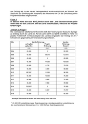 2 von Gröbzig teil. In den neuen Vertragsentwurf wurde ausdrücklich auf Wunsch der Stadt und zur Erhöhung der Akzeptanz des Museums vor Ort die Einrichtung eines Programmbeirates aufgenommen. Frage 1 In welcher Höhe wird das MSG jährlich durch das Land Sachsen-Anhalt geför- dert? Bitte für den Zeitraum 2004 bis 2018 aufschlüsseln, inklusive der Projekt- förderungen. Antwort zu Frage 1 Die nachfolgende tabellarische Übersicht stellt die Förderung des Museums Synago- ge Gröbzig durch das Land dar. Für die Jahre 2017 und 2018 sind Mittel in Höhe von jeweils 79.300 EUR im Haushaltsplan des Landes eingestellt. Der Vertrag für 2017 befindet sich gegenwärtig im Unterzeichnungsverfahren. Jahr Landesförderung Landes- vertraglich Projekt- förderung gebunden förderung Gesamt - EUR - - EUR - - EUR - 2004 65.300 0 65.300 2005 65.300 58.310 123.610 2006 65.300 0 65.300 2007 65.300 44.000 109.300 2008 65.300 4.730 70.030 2009 65.300 3.500 68.800 2010 85.300* 11.050 96.350 2011 65.300 10.000 75.300 2012 65.300 5.000 70.300 2013 65.300 7.250 72.550 2014 70.300** 0 70.300 2015 65.300 8.407 73.707 2016 65.300 0 65.300 * einmalige Übernahme des Anteils der Stadt Gröbzig durch das Land ** 65.300 EUR Landesförderung per Zuwendungsvertrag / einmalige zusätzliche Landesförderung des unvorhersehbaren Mehrbedarfes i. H. v. 5.000 EUR per Zuwendungsbescheid