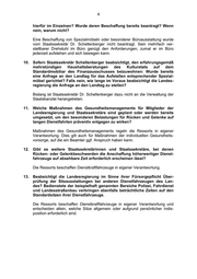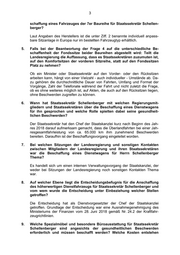 4 hierfür im Einzelnen? Wurde deren Beschaffung bereits beantragt? Wenn nein, warum nicht? Eine Beschaffung von Spezialmöbeln oder besonderer Büroausstattung wurde vom Staatssekretär Dr. Schellenberger nicht beantragt. Sein mehrfach ver- stellbarer Drehstuhl im Büro genügt den Anforderungen, zumal er im Büro jederzeit aufstehen und sich bewegen kann. 10. Sofern Staatssekretär Schellenberger beabsichtigt, den erfahrungsgemäß mehrstündigen Haushaltsberatungen des Kulturetats auf dem Standardmobiliar des Finanzausschusses beizuwohnen: Wurde bereits eine Anfrage an den Landtag für das Aufstellen entsprechender Spezial- möbel gerichtet? Falls nein, wie lange im Voraus beabsichtigt die Landes- regierung die Anfrage an den Landtag zu stellen? Bislang ist Staatssekretär Dr. Schellenberger dazu nicht an die Verwaltung der Staatskanzlei herangetreten. 11. Welche Maßnahmen des Gesundheitsmanagements für Mitglieder der Landesregierung und Staatssekretäre sind geplant oder werden bereits umgesetzt, um den besonderen Belastungen für Rücken und Gelenke auf langen Dienstfahrten präventiv entgegen zu wirken? Maßnahmen des Gesundheitsmanagements regeln die Ressorts in eigener Verantwortung. Dies gilt auch für Maßnahmen der individuellen Gesundheits- vorsorge, auf die ein Beamter ggf. Anspruch haben kann. 12. Gibt es weitere Staatssekretärinnen und Staatssekretäre, bei denen Rücken- oder Gelenkbeschwerden die Anschaffung höherwertiger Dienst- fahrzeuge auf absehbare Zeit erforderlich erscheinen lässt? Die Ressorts beschaffen Dienstkraftfahrzeuge in eigener Verantwortung. 13. Beabsichtigt die Landesregierung im Sinne ihrer Fürsorgepflicht Über- prüfung der Sitzausstattungen bei anderen Dienstfahrzeugen des Lan- des? Bedienstete der beispielhaft genannten Bereiche Polizei, Fahrdienst und Landesstraßenbau verbringen ebenfalls beträchtliche Zeiten auf den Standardsitzen ihrer Dienstfahrzeuge. Die Ressorts beschaffen Dienstkraftfahrzeuge in eigener Verantwortung und entscheiden allein, welche Sitze allgemein oder aufgrund persönlicher Indis- position erforderlich sind.