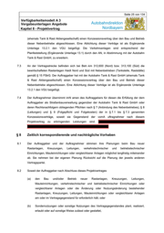 Seite 26 von 134 Verfügbarkeitsmodell A 3 Vergabeunterlagen Angebote Kapitel 8 - Projektvertrag verpflichtet sich der Auftragnehmer, alle Maßnahmen zu unterlassen, die zu einer Verzögerung oder Verhinderung der Vorhaben führen können. Der Auftragnehmer wird insbesondere keine Rechtsbehelfe gegen die Vorhaben einlegen. Dem Auftragnehmer obliegen die Abstimmung und die Koordination mit dem Auftraggeber oder einem entsprechenden Dritten. Führen der Bau und/oder Betrieb neuer oder die Änderung oder Nutzungsänderung bestehender Rastanlagen oder vergleichbarer Anlagen imS inne des § 8.2(a), die bis zur endgültigen Übergabe realisiert werden, zu unvermeidbaren Terminverschiebungen, so kann der Auftragnehmer eine Anpassung des Terminplans Bau nach Maßgabe des § 29.3 verlangen. Entstehen dem Auftragnehmer imZ usammenhang mit demB au und/oder Betrieb neuer oder der Änderung oder Nutzungsänderung bestehender Rastanlagen oder vergleichbarer Anlagen imS inne des § 8.2(a), die bis zur endgültigen Übergabe realisiert werden, Mehrkosten, so sind diese vom Auftraggeber als unvorhersehbare Mehrkosten zu erstatten. Die Erstattung von Beschleunigungskosten ist ausgeschlossen, es sei denn, der Auftraggeber ordnet eine Beschleunigung an. Die Regelungen in § 18, § 22 und § 24, bleiben von S. 4 bis 9 unberührt. Die Abwicklung der unvorhersehbaren Mehrkosten erfolgt gemäß § 50. Im Hinblick auf Mängelbeseitigung an den nachträglichen Vorhaben gilt § 37.6. 8.3 Die Pflichten des Auftragnehmers imZ usammenhang mit demB au, der Erhaltung und dem Betrieb des Vertragsgegenstandes nach diesem Vertrag bleiben unberührt. 8.4 Die Möglichkeit des Auftragnehmers, sich imH inblick auf die Errichtung neuer Rastanlagen um eine Konzessionierung nach § 15 FStrG zu bewerben, bleibt unberührt. 8.5 Dem Auftragnehmer ist bekannt, dass im Bereich des Vertragsgegenstandes Vorwegmaßnahmen durch den Auftraggeber durchgeführt werden. Sofern diese