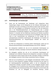 Seite 30 von 134 Verfügbarkeitsmodell A 3 Vergabeunterlagen Angebote Kapitel 8 - Projektvertrag führen. Die Erstattung von Beschleunigungskosten ist ausgeschlossen, es sei denn, der Auftraggeber ordnet eine Beschleunigung an. Die Abwicklung der erfolgt gemäß § 50. § 12 Genehmigungen und Gestattungen 12.1 Soweit nicht alle Genehmigungen oder Gestattungen zumV ertragsschluss dieses Projektvertrages vorliegen, hat der Auftragnehmer die noch fehlenden Genehmigungen und Gestattungen für den Bau, die Erhaltung und den Betrieb auf eigene Kosten einzuholen, soweit diese nicht vomA uftraggeber aus Rechtsgründen einzuholen sind. Dies gilt entsprechend, wenn in den Planfeststellungsbeschlüssen und Plangenehmigungen oder in sonstigen Genehmigungen und Gestattungen festgelegt ist, dass für bestimmte Umstände eine Freigabe, Abnahme o. ä. einzuholen oder eine Abstimmung, Zustimmung oder Ähnliches vorzunehmen ist. Auch soweit aus Rechtsgründen eine Einholung durch den Auftraggeber erfolgt, ändert dies nichts an einer Verantwortlichkeit des Auftragnehmers für das Vorliegen aller zur Leistungserbringung erforderlichen Genehmigungen oder Gestattungen, mit Ausnahme der Planfeststellungsbeschlüsse und Plangenehmigungen betreffend den Ausbau der Vertragsstrecke. Die Pflicht des Auftragnehmers zur Einholung weiterer Genehmigungen umfasst auch die Einholung artenschutzrechtlicher Ausnahmegenehmigungen nach § 45 Abs. 7 BNatschG. 12.2 Der Auftragnehmer verpflichtet sich, alle von ihm einzuholenden Genehmigungen und Gestattungen rechtzeitig zu beantragen und alle dafür erforderlichen Unterlagen einzureichen. 12.3 Der Auftraggeber verpflichtet sich, alle von ihm einzuholenden Genehmigungen und Gestattungen nach schriftlichem Antrag durch den Auftragnehmer unverzüglich zu beantragen. Der Auftragnehmer erstellt auf eigene Kosten die dafür notwendigen Unterlagen und stellt diese dem Auftraggeber zusammen mit dem Antrag in ausreichender Anzahl zur Verfügung. 12.4 Stellt sich bei der Durchführung der vomA uftraggeber durchzuführenden Verfahren heraus, dass die von demA uftragnehmer vorgelegten Unterlagen unzureichend sind oder werden von der Genehmigungsbehörde Nachforderungen gestellt, so wird der Auftragnehmer die entsprechenden Unterlagen unverzüglich erarbeiten und dem Auftraggeber übergeben. Soweit der Auftraggeber bei der Durchführung eines entsprechenden Verfahrens fachliche und/oder juristische Beratung oder Unterstützung benötigt, wird der Auftragnehmer auf seine Kosten alles Erforderliche tun, umd em Auftraggeber die erforderliche Beratungs- und/oder