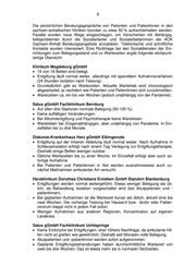 6 Die persönlichen Beratungsgespräche von Patienten und Patientinnen in den sachsen-anhaltischen Kliniken konnten zu etwa 50 % aufrechterhalten werden. Parallel wurden neue Wege eingeschlagen, um Versicherten mit Abhängig- keitsproblemen durch die Sozialarbeiter und Sozialarbeiterinnen der AOK Sachsen-Anhalt Beratungsangebote anzubieten. Telefonische und schriftliche Kontakte wurden intensiviert. Eine Rückfrage bei den Sozialdiensten der Ein- richtungen zum Belegungsstand und zu Wartezeiten ergab folgende stichpunk- tartige Übersicht: Klinikum Magdeburg gGmbH 16 von 18 Betten sind belegt. Entgiftung läuft normal weiter, allerdings mit speziellem Aufnahmeverfahren (24 Stunden Isolation nach Testung). Grundsätzlich gibt es Wartezeiten. Aktuelle Warteliste wird chronologisch abgearbeitet, je nachdem wie Patienten und Patientinnen sich zurückmelden. Wartezeiten ca. ein bis vier Wochen (jedoch unabhängig von der Pandemie). Salus gGmbH Fachklinikum Bernburg Auf allen drei Stationen normale Belegung (90-100 %). Keine auffälligen Veränderungen. Bei Alkoholentgiftung und Psychotherapie keine Wartelisten. Wartelisten bei Drogenabhängigen, aber unabhängig von Pandemie. In Ein- zelfällen bis zu drei Monate. Diakonie-Krankenhaus Harz gGmbH Elbingerode Entgiftung auf der Inneren Abteilung läuft normal weiter. Nach Aufnahme in Schleusenstation erfolgt nach einem Tag Verlegung zur Entgiftungstherapie. Deshalb einige Betten weniger nutzbar. Übliche Wartezeiten bis zu einer Woche. Im Einzelfall erfolgt aber auch so- fortige Aufnahme. Bei Patienten und Patientinnen in Not werden ausnahmsweise auch zu- nächst Maßnahmen ambulanter Art versucht. Harzklinikum Dorothea Christiane Erxleben GmbH Standort Blankenburg Entgiftungen werden normal weitergeführt. Etwas weniger Belegung als üb- lich, da Behandlung Isolation vorgeschaltet wird (bei Akutpatienten und - patientinnen). Bei geplanten Aufnahmen ist die Wartezeit kürzer als üblich, aktuell eine bis zwei Wochen. Die vorherige Testung bei Hausarzt bzw. -ärztin oder Fieber- zentrum klappt nicht in jedem Fall sofort. Weniger Aufnahmen aus anderen Regionen, Konzentration auf eigenen Landkreis. Salus gGmbH Fachklinikum Uchtspringe Keine Einbrüche bei Entgiftungen, eher höhere Nachfrage, da ambulante Hil- fen nicht so greifen wie gewöhnlich. Deshalb seit Monaten volle Belegung. Akutpatienten und -patientinnen werden sofort aufgenommen. Geplante Entgiftungsbehandlungen haben durchschnittliche Wartezeit von zwei bis drei Wochen. Das ist etwas mehr als in normalen Stoßzeiten.