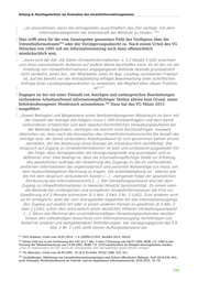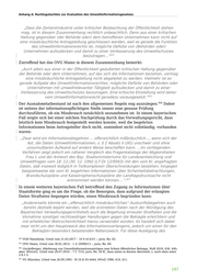 Anhang A: Rechtsgutachten zur Evaluation des Umweltinformationsgesetzes „Dass die Zementindustrie unter kritischer Beobachtung der Öffentlichkeit stehen mag, ist in diesem Zusammenhang rechtlich unbeachtlich. Denn aus einer kritischen Haltung gegenüber (der Behörde oder) dem betroffenen Unternehmen kann nicht auf eine missbräuchliche Antragstellung geschlossen werden, weil es gerade die Funktion des Umweltinformationsrechts ist, mögliche Defizite von (Behörden oder) Unternehmen aufzudecken und damit zu einer Verbesserung des Umweltschutzes beizutragen…“ 824 Zutreffend hat das OVG Mainz in diesem Zusammenhang bemerkt: „Auch allein aus einer in der Öffentlichkeit geäußerten kritischen Haltung gegenüber der Behörde oder dem Unternehmen, auf das sich die Informationen beziehen, vermag eine missbräuchliche Antragstellung nicht abgeleitet zu werden. Vielmehr ist es gerade Aufgabe des Umweltinformationsrechtes, mögliche Defizite von Behörden oder Unternehmen mit umweltrelevanter Tätigkeit aufzudecken und damit zu einer Verbesserung des Umweltschutzes beizutragen. Eine kritische Einstellung wird daher vom Umweltinformationsrecht geradezu vorausgesetzt.“ 825 826 Der Ausnahmetatbestand ist nach den allgemeinen Regeln eng auszulegen. Daher ist seitens der informationspflichtigen Stelle immer eine genaue Prüfung durchzuführen, ob ein Missbrauch tatsächlich anzunehmen ist. In einem bayerischen Fall zeigte sich bei einer solchen Nachprüfung durch das Verwaltungsgericht, dass letztlich kein Missbrauch festgestellt werden konnte, weil die begehrten Informationen beim Antragsteller doch nicht, zumindest nicht vollständig, vorhanden waren: „Zwar wird ein Informationsbegehren ... offensichtlich mißbräuchlich..., wenn sich der Ast. die Daten (Umweltinformationen, s. § 2 Absatz II UIG) unschwer und ohne unzumutbaren Aufwand auf andere Weise beschaffen kann. ...Im vorliegenden Verfahren zeigt jedoch ein näherer Vergleich des Fragenkatalogs der Abgeordneten Frau L und der Antwort des Bay. Staatsministeriums für Landesentwicklung und Umweltfragen vom 18. 12./30. 12. 1992 (LT-Dr 12/9563) mit den vom Kl. angefragten Daten, daß insoweit lediglich in Teilkomplexen Überschneidungen bestehen, hingegen beispielsweise die vom Kl. begehrten Informationen über Sicherheitsbetrachtungen, Brandschutzpläne und Katastrophenschutzpläne der Landtagsdrucksache nicht entnommen werden können....“. 827 In einem weiteren bayerischen Fall betreffend den Zugang zu Informationen über Staatsforste ging es um die Frage, ob die Besorgnis, dass aufgrund der erlangten Daten Straftaten begangen würden, einen Missbrauch begründen kann: „Andererseits könnte ein „offensichtlich missbräuchliches“ Auskunftsbegehren auch bereits deshalb bejaht werden, weil die erstrebten Daten nach der Würdigung des Bayerischen Verwaltungsgerichtshofs auch die Begehung erneuter Straftaten und die Vornahme sonstiger rechtswidriger Handlungen gegen die Beklagte erleichtern und mit erheblicher Wahrscheinlichkeit hierzu verwendet würden. Es handelt sich dabei zwar nicht um den Hauptzweck des Informationsverlangens, jedoch um einen für den Beklagten besonders belastenden Nebenzweck. Für diese Auslegung des 824 VGH Mannheim, Urteil vom 21.03.2017 – 10 S 413/15 –, juris, Rn. 65. 825 OVG Mainz, Urteil vom 30.01.2014 – 1 A 10999/13 –, juris, Rn. 69. 826 Guckelberger, Ablehnung von Umweltinformationsanträgen zum Schutz öffentlicher Belange, NuR 2018, 436, 440; aber: BVerwG, Urteil vom 28.07.2016 – 7 C 7/14, juris, Rn. 20 ff., dazu unten in diesem Abschnitt; s. auch oben unter 2.8.1.5. 827 VG München, Urteil vom 26.09.1995 - M 16 K 93.4444, NVwZ 1996, 410, 411. 197