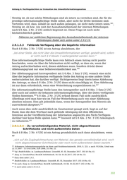 Anhang A: Rechtsgutachten zur Evaluation des Umweltinformationsgesetzes Streitig ist, ob nur solche Mitteilungen sind als intern zu verstehen sind, die für die jeweilige informationspflichtige Stelle selbst, aber nicht für Dritte bestimmt sind. 845 Vertreten wird, dass, sobald sie nach außen gelangen, sie nicht mehr intern seien. Streitig ist, ob bzw. wie weit der Ausnahmetatbestand der internen Mitteilungen nach § 8 Abs. 2 Nr. 2 UIG zeitlich begrenzt ist. Diese Frage ist noch nicht höchstrichterlich geklärt. Näheres zur zeitlichen Begrenzung des Ausnahmetatbestands der internen Mitteilungen findet sich unten unter 2.9.2.10. 2.9.1.3.3 Fehlende Verfügung über die begehrte Information Nach § 8 Abs. 2 Nr. 3 UIG ist ein Antrag abzulehnen, der „bei einer Stelle, die nicht über die Umweltinformationen verfügt, gestellt wird, sofern er nicht nach § 4 Absatz 3 weitergeleitet werden kann.“ Eine informationspflichtige Stelle kann rein faktisch einen Antrag nicht positiv bescheiden, wenn sie über die Information nicht verfügt, so dass sie, wenn der Antrag aufrechterhalten wird, diesen ablehnen muss. Insofern drückt dieser 846 Ablehnungsgrund nur eine Selbstverständlichkeit aus. Der Ablehnungsgrund korrespondiert mit § 4 Abs. 3 Satz 1 UIG, wonach eine nicht über die begehrte Information verfügende Stelle den Antrag an eine andere Stelle weiterzuleiten hat, die darüber verfügt. Richtigerweise liegt hierin keine Ablehnung des Antrags, so dass § 8 Abs. 2 Nr. 3 UIG dann nicht einschlägig ist. Eine Ablehnung 847 ist nur dann erforderlich, wenn eine Weiterleitung ausgeschlossen ist. Die informationspflichtige Stelle kann den Antragsteller nach § 4 Abs. 3 Satz 2 UIG aber auch auf andere ihr bekannte informationspflichtige, über die Daten verfügende 848 Stellen hinweisen. § 8 Abs. 2 Nr. 3 UIG erfasst diesen Fall nicht ausdrücklich. Allerdings wird man hier wie im Fall der Weiterleitung auch von einer Ablehnung absehen müssen. Dies gilt jedenfalls dann, wenn der Antragsteller den Hinweis als 849 ausreichend akzeptiert. Auch wenn dies nicht ausdrücklich im Gesetzestext gesagt wird, liegt es auf der Hand, dass die dem Wortlaut nach geltende Abwägung mit dem öffentlichen Interesse an der Veröffentlichung der Information angesichts des Nicht-Verfügens 850 darüber hier keine Rolle spielen kann. Insoweit ist § 8 Abs. 2 Nr. 3 UIG teleologisch 851 zu reduzieren. 2.9.1.3.4 Zu vervollständigendes Material, nicht abgeschlossene Schriftstücke und nicht aufbereitete Daten Nach § 8 Abs. 2 Nr. 4 UIG ist ein Antrag grundsätzlich auch dann abzulehnen, wenn er „sich auf die Zugänglichmachung von Material, das gerade vervollständigt wird, noch nicht abgeschlossener Schriftstücke oder noch nicht aufbereiteter Daten bezieht.“ 845 Schomerus, Informationsansprüche im Atom- und Strahlenschutzrecht, 2010, S. 221; s. auch: VG Köln, Urteil vom 22.11.2007 – 13 K 4113/06, ZUR 2008, 215 Rn. 22. 846 Vgl. Reidt/Schiller, in: Landmann/Rohmer, UmweltR, 85. EL Dezember 2017, UIG § 8 Rn. 61. 847 Karg, in: Gersdorf/Paal, BeckOK InfoMedienR, 18. Ed. 01.02.2017, UIG § 8 Rn. 53. 848 Dazu oben unter 2.4.1. 849 Reidt/Schiller, in: Landmann/Rohmer, UmweltR, 85. EL Dezember 2017, UIG § 8 Rn. 63. 850 So auch: Karg, in: Gersdorf/Paal, BeckOK InfoMedienR, 18. Ed. 01.02.2017, UIG § 8 Rn. 53. 851 S. auch unten unter 2.9.1.3.5. 202