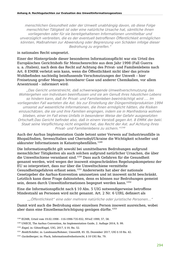 Anhang A: Rechtsgutachten zur Evaluation des Umweltinformationsgesetzes menschlichen Gesundheit oder der Umwelt unabhängig davon, ob diese Folge menschlicher Tätigkeit ist oder eine natürliche Ursache hat, sämtliche ihnen vorliegenden oder für sie bereitgehaltenen Informationen unmittelbar und unverzüglich verbreiten, die es der eventuell betroffenen Öffentlichkeit ermöglichen könnten, Maßnahmen zur Abwendung oder Begrenzung von Schäden infolge dieser Bedrohung zu ergreifen.“ in nationales Recht umgesetzt. Einer der Hintergründe dieser besonderen Informationspflicht war ein Urteil des Europäischen Gerichtshofs für Menschenrechte aus dem Jahr 1998 (Fall Guerra u. a. /Italien), nach dem das Recht auf Achtung des Privat- und Familienlebens nach Art. 8 EMRK verletzt sein kann, wenn die Öffentlichkeit nicht über das private Wohlbefinden nachteilig beinflussende Verschmutzungen der Umwelt – hier Freisetzung großer Mengen brennbarer Gase und anderer Chemikalien, vor allem Arsentrioxid – informiert wird: „Das Gericht unterstreicht, daß schwerwiegende Umweltverschmutzung das Wohlergehen von Individuen beeinflussen und sie am Genuß ihres häuslichen Lebens so hindern kann, daß ihr Privat- und Familienleben beeinträchtigt wird …. Im vorliegenden Fall warteten die Ast. bis zur Einstellung der Düngemittelproduktion 1994 umsonst auf wesentliche Informationen, die ihnen ermöglicht hätten, die Risiken einzuschätzen, die sie und ihre Familien eingingen, indem sie in Manfredonia wohnen blieben, einer im Fall eines Unfalls in besonderer Weise der Gefahr ausgesetzten Ortschaft.Das Gericht befindet also, daß in einem Verstoß gegen Art. 8 EMRK der bekl. Staat seine Verpflichtung nicht eingelöst hat, das Recht der Ast. auf Achtung ihres Privat- und Familienlebens zu sichern.“ 1248 Auch der Aarhus Implementation Guide betont unter Verweis auf Industrieunfälle in Bhopal/Indien, Seveso/Italien und Chernobyl/Ukraine die Wichtigkeit schneller und 1249 akkurater Informationen in Katastrophenfällen. Die Informationspflicht gilt sowohl bei unmittelbaren Bedrohungen aufgrund menschlicher Tätigkeiten als auch solchen aufgrund natürlicher Ursachen, die über 1250 die Umweltschiene veranlasst sind. Dass auch Gefahren für die Gesundheit genannt werden, wird wegen der insoweit eingeschränkten Regelungskompetenz der EU so interpretiert, dass nur über die Umweltschiene vermittelte 1251 Gesundheitsgefahren erfasst seien. Andererseits hat aber der nationale Gesetzgeber die Aarhus-Konvention umzusetzen und ist insoweit nicht beschränkt. Letztlich kann diese Frage dahinstehen, denn es können nur Bedrohungen gemeint 1252 sein, denen durch Umweltinformationen begegnet werden kann. Eine die Informationspflicht nach § 10 Abs. 5 UIG notwendigerweise betroffene Mindestzahl an Personen wird nicht genannt. Art. 2 Nr. 6 UIRL definiert als „„Öffentlichkeit“ eine oder mehrere natürliche oder juristische Personen…“ Damit wird auch die Bedrohung einer einzelnen Person insoweit ausreichen, wobei 1253 aber dann eine Einzelbenachrichtigung genügen dürfte. 1248 EGMR, Urteil vom 19.02.1998 - 116-1996-735-932, NVwZ 1999, 57, 58. 1249 UNECE, The Aarhus Convention, An Implementation Guide, 2. Auflage 2014, S. 99. 1250 Engel, in: Götze/Engel, UIG, 2017, § 10, Rn. 52. 1251 Reidt/Schiller, in: Landmann/Rohmer, UmweltR, 85. EL Dezember 2017, UIG § 10 Rn. 42. 1252 Guckelberger, in: Fluck, Informationsfreiheitsrecht, § 10 UIG Rn. 79. 294