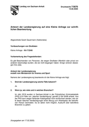 Landtag von Sachsen-Anhalt Drucksache 7/5676 14.02.2020 Antwort der Landesregierung auf eine Kleine Anfrage zur schrift- lichen Beantwortung Abgeordnete Sarah Sauermann (fraktionslos) Vortäuschungen von Straftaten Kleine Anfrage - KA 7/3345 Vorbemerkung des Fragestellenden: Es gibt Beschwerden von Personen, die wegen Straftaten öffentlich oder privat von anderen beschuldigt wurden, die sie nicht begangen haben. Einige verloren deswe- gen ihre Jobs. Antwort der Landesregierung erstellt vom Ministerium für Inneres und Sport Namens der Landesregierung beantworte ich die Kleine Anfrage wie folgt: 1. Sind der Landesregierung solche Fälle bekannt? Ja. 2. Wenn ja, wie viele und in welchen Branchen? Im Jahr 2019 wurden in Sachsen-Anhalt in der Polizeilichen Kriminalstatistik (PKS) 614 Fälle von „falscher Verdächtigung“ gemäß § 164 StGB erfasst. Aus der PKS kann wegen fehlender Katalogwerte nicht recherchiert werden, wie vie- le dieser falschen Verdächtigungen einen Bezug zum Arbeitsplatz der betroffe- nen Person beinhalten. Es ist daher nicht möglich, Auskunft über betroffene Branchen zu geben. (Ausgegeben am 17.02.2020)