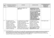 CONSOLIDATED TEXT / COMMISSION PROPOSAL EP TEXT COUNCIL TEXT COMPROMISE Row COM(2018)0378 FINAL PROPOSALS / COMMENTS 8 (1) In the interests of the proper (1) In the interests of the proper (1) In the interests of the proper In principle acceptable. functioning of the internal market, functioning of the internal market functioning of the internal market, it is necessary to further improve and the development of a European it is necessary to further improve and expedite cooperation between area of civil justice governed by the and expedite cooperation between courts in the taking of evidence. principle of mutual trust and courts in the taking of evidence. mutual recognition of judgments, it is necessary to further improve and expedite cooperation between courts in the Member States in relation to the taking of evidence. 9 (2) Council Regulation (EC) No (2) Council Regulation (EC) No (2) Council Regulation (EC) No Identical. 2 2 2 1206/2001 lays down rules on 1206/2001 lays down rules on 1206/2001 lays down rules on cooperation between the courts of cooperation between the courts of cooperation between the courts of the Member States in the taking the Member States in the taking of the Member States in the taking of of evidence in civil or commercial evidence in civil or commercial evidence in civil or commercial matters. matters. matters. 10 (2a) For the purposes of this (2a) For the purposes of this Maintain the general Regulation, the term ‘court’ should Regulation, the term 'court' approach. be given a broad meaning so as to should mean also other cover not only courts in the strict authorities exercising judicial sense of the word, that exercise functions or acting pursuant to a judicial functions, but also other delegation of power by a judicial bodies or authorities which are authority or acting under the competent under national law to control of a judicial authority 2 Council Regulation (EC) No 1206/2001 of 28 May 2001 on cooperation between the courts of the Member States in the taking of evidence in civil or commercial matters (OJ L 174, 27.6.2001, p. 1). 3 Council Regulation (EU) No 2019/1111 on jurisdiction, the recognition and enforcement of decisions in matrimonial matters and the matters of parental responsibility, and on international child abduction (OJ L 178, 2.7.2019, p. 1). 2