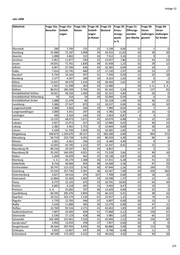 Anlage 13 Jahr 1999 Bibliothek Frage 15a: Frage 15a: Frage 15b: Frage 18: Frage 19: Frage 20: Frage 21: Frage 22: Frage 26: Frage 30: Frage 30: Entleihungen Besucher Nutzer Entleih‐ Bestand Erneu‐ Öffnungs‐ Ausgaben Benut‐ Veran‐ Veran‐ ungen erungs‐ stunden Erwerbung zungs‐ staltungen staltungen je Nutzer quote im Jahr in DM gebühren gesamt für Kinder in % Gräfenhainichen 80.316 25.476 2.693 30 33.767 4,06 1.562 17.895 nein 57 42 Gröbzig 25.461 6.537 996 26 11.768 k.A. 577 4.607 nein 28 13 Güsten 7.761 3.232 383 20 11.494 5,21 1.038 3.018 nein 37 10 Hadmersleben 21.690 6.032 476 46 4.920 8,95 808 5.113 nein 26 22 Halberstadt 296.983 124.263 5.429 55 82.084 3,47 2.411 72.552 nein 196 100 Haldensleben 89.135 48.836 3.928 23 101.838 1,65 1.392 61.720 nein 194 114 Halle KrsB 34.149 8.735 770 44 75.752 2,43 1.612 37.836 nein 156 68 Halle StB 1.513.367 351.819 39.599 38 579.034 1,83 25.597 212.186 nein 729 280 Harzgerode 9.800 3.488 342 29 10.192 1,46 494 2.556 ja 7 0 Helbra 25.419 5.298 517 49 11.463 k.A. 1.053 2.556 ja 14 6 Hettstedt KrsB/FB2 156.035 38.294 11.633 13 46.149 2,61 1.467 23.519 nein 60 17 Hettstedt StB 91.085 26.181 2.606 35 36.598 3,54 945 18.600 nein 27 13 Hohenmölsen 63.325 30.431 1.724 37 17.648 3,32 1.258 13.486 nein 37 20 Ilberstedt 1.030 350 117 9 4.509 5,54 200 2.045 nein 0 0 Ilsenburg 71.193 23.495 2.134 33 24.273 k.A. 1.341 12.265 nein 54 20 Jävenitz 3.556 1.120 158 23 7.241 2,17 699 1.682 nein 53 46 Jerichow 16.797 5.355 513 33 13.267 2,39 895 2.363 nein 67 36 Jeßnitz 27.806 4.671 631 44 16.697 2,51 592 2.892 nein 10 0 Jessen 70.038 21.444 1.801 39 29.882 2,39 3.155 89.503 nein 41 15 Gröbers 14.547 4.612 628 23 7.887 1,55 676 nein 16 7 Kalbe 21.330 6.224 667 32 17.363 4,20 853 1.712 nein 45 19 Karsdorf 13.913 6.703 446 31 7.561 2,11 463 1.534 nein 28 21 Kemberg 4.485 2.298 230 20 8.099 1,10 487 1.023 nein 6 1 Klötze 40.501 12.489 1.291 31 38.507 2,47 1.246 8.948 nein 81 38 Könnern 7.970 1.442 183 44 12.831 0,80 640 2.049 ja 0 0 Köthen KrsErgB 54.147 9.415 1.044 52 32.340 3,20 1.836 17.915 nein 21 0 Köthen StB 189.310 86.114 5.841 32 65.478 3,74 1.608 34.019 nein 145 66 Landsberg 37.272 5.957 1.000 37 10.376 1,90 1.040 nein 13 3 Langenweddingen 6.010 2.225 302 20 5.254 5,12 433 1.534 nein 9 7 Letzlingen 4.037 487 151 27 3.060 0,51 208 841 nein 7 3 Leuna 41.739 12.926 1.130 37 16.046 5,84 1.002 9.203 nein 26 20 Löbejün 10.230 4.286 402 25 14.103 1,00 388 nein 34 21 Loburg 4.481 k.A. 1.736 3 12.989 1,13 625 1.098 nein 8 7 Lützen 43.256 10.140 1.140 38 9.540 3,71 796 3.579 nein 7 1 Magdeburg 1.220.832 528.050 45.676 27 568.885 3,84 11.859 268.371 nein 1061 373 Merseburg FB 35.010 8.536 839 42 8.700 k.A. 447 5.113 nein 26 16 2/4