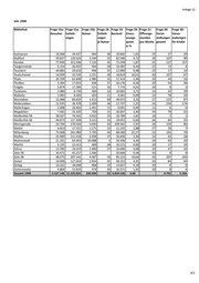 Anlage 12 Jahr 1998 Bibliothek Frage 15a: Frage 15a: Frage 15b: Frage 18: Frage 19: Frage 20: Frage 21: Frage 30: Frage 30: Besucher Entleih‐ Nutzer Entleih‐ Bestand Erneu‐ Öffnungs‐ Veran‐ Veran‐ ungen ungen erungs‐ stunden staltungen staltungen je Nutzer quote pro Woche gesamt für Kinder in % Ilberstedt 280 2.760 125 22 5.238 0,00 15 1 0 Ilsenburg 25.480 72.187 2.098 34 24.333 11,03 26 30 20 Jävenitz 1.098 3.602 152 24 7.512 3,16 15 9 3 Jerichow 5.851 11.877 530 22 13.927 7,86 21 43 24 Jessen 24.031 71.761 1.830 39 31.958 1,22 32 29 12 Jeßnitz 6.057 27.246 636 43 16.382 0,04 14 10 1 Kalbe 7.014 22.745 840 27 17.150 2,97 20 53 27 Karsdorf 6.734 14.164 457 31 7.594 0,50 12 25 18 Kemberg 2.377 4.597 240 19 8.253 2,63 20 6 2 Klötze 13.037 40.570 1.410 29 38.369 2,02 25 97 45 Könnern 1.455 11.398 264 43 12.480 ‐ 28 k. A. k. A. Köthen 86.013 185.209 5.765 32 65.163 3,24 32 137 65 Kreisbibliothek Köthen 10.021 58.256 1.039 56 32.222 4,83 40 20 0 Kreisbibliothek Wittenberg 74 554 54 10 32.094 0,54 0 0 0 Kreisbibliothek Zerbst 1.088 11.478 85 35.218 1,99 20 36 15 Landsberg 5.386 27.247 873 31 10.237 0,00 26 18 10 Langeneichstädt 2.088 5.004 266 19 7.989 8,04 16 7 3 Langenweddingen 2.000 5.431 297 18 5.786 5,58 17 16 6 Letzlingen 585 3.324 143 23 2.953 8,87 4 3 0 Leuna 13.225 48.073 1.071 45 16.074 6,88 21 22 14 Lobejün 3.927 15.073 457 33 13.986 0,43 12 40 24 Loburg 2.282 5.461 1.751 3 12.844 0,00 19 58 26 Lützen 4.100 51.700 1.003 52 10.382 2,82 16 10 0 Magdeburg 440.873 1.229.670 39.517 31 583.208 6,89 42 894 372 Merseburg 56.719 223.728 6.591 34 80.559 4,38 28 84 8 Mieste 2.091 6.361 256 25 8.340 4,49 25 9 4 Mücheln 12.655 45.795 1.222 37 12.347 8,91 23 22 5 Naumburg FB 80.210 29.107 821 35 8.852 ‐ 14 2 1 Naumburg SB 35.242 164.305 4.021 41 73.218 3,66 21 90 16 Nebra 1.209 34.929 942 37 19.138 0,87 18 34 7 Nienburg k. A. 36.174 1.388 26 17.451 6,28 20 41 32 Oebisfelde 8.716 46.066 954 48 14.369 2,56 17 97 29 Oschersleben 30.747 113.153 3.742 30 47.644 2,16 29 169 75 Osterburg 53.334 257.740 5.391 48 63.587 7,89 30 420 366 Osternienburg 4.627 29.416 274 107 7.708 0,00 20 18 10 Osterwieck 12.864 32.369 1.402 23 19.298 1,37 17 12 6 Parey 6.775 15.133 675 22 10.791 10,66 24 64 44 Prettin 4.605 6.318 492 13 9.403 8,47 15 10 2 Pretzsch k. A. 25.682 707 36 13.429 0,00 19 25 4 Quedlinburg 60.295 205.376 3.893 53 66.224 9,31 29 38 16 Querfurt 20.152 103.274 1.534 67 22.957 1,15 23 74 41 Raguhn 2.770 12.783 346 37 6.907 0,00 20 15 1 Roßla 3.520 11.889 585 20 12.579 0,98 20 47 21 Roßlau 22.769 92.516 2.271 41 62.663 1,85 20 87 28 Saalkreisbücherei 7.007 33.483 659 51 77.868 4,12 20 150 67 Salzmünde 5.530 17.119 428 40 5.985 1,02 38 65 23 Salzwedel 105.300 232.061 7.526 31 65.094 2,22 34 156 60 Sandersdorf 4.956 13.033 478 27 7.857 0,00 20 0 0 Sangerhausen 46.444 207.934 4.935 42 66.886 9,58 28 113 58 Schkopau 5.835 15.867 547 29 8.748 6,48 15 11 7 Schönebeck 40.338 175.205 4.152 42 40.616 4,92 32 90 20 2/3