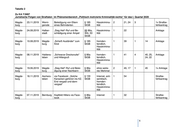 Tabelle 3 Zu KA 7/3697 Juristische Folgen von Straftaten im Phänomenbereich „Politisch motivierte Kriminalität-rechts“ für das I. Quartal 2020 04.07.2019 Internet Hitlerbild § 86a StGB Internet 1 49 20 Ts Geldstrafe 15.06.2019 Stendal Hakenkreuzshirt § 86a StGB ohne weiteres 1 37 35 Ts Geldstrafe Merkmal 19.04.2019 Salzwedel „Sieg Heil“ § 86a StGB ohne weiteres 1 20 40 Ts Geldstrafe Merkmal 5