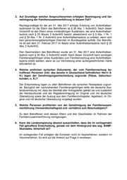 2 3. Auf Grundlage welcher Anspruchsnormen erfolgten Beantragung und Ge- nehmigung der Familienzusammenführung in diesem Fall? Rechtsgrundlage für die am 31. Mai 2017 erfolgte Erteilung von Aufenthaltser- laubnissen für die Eltern des Betroffenen ist § 36 Abs. 1 AufenthG. Nach dieser Vorschrift ist den Eltern eines minderjährigen Ausländers, der eine Aufenthaltser- laubnis nach § 25 Absatz 2 AufenthG besitzt, abweichend von § 5 Abs. 1 Nr. 1 und § 29 Abs. 1 Nr. 2 AufenthG eine Aufenthaltserlaubnis zu erteilen, wenn sich kein personensorgeberechtigter Elternteil im Bundesgebiet aufhält. Der Betroffe- ne ist seit dem 21. Februar 2017 im Besitz einer Aufenthaltserlaubnis nach § 25 Abs. 2 AufenthG. Den Geschwistern des Betroffenen wurde am 31. Mai 2017 eine Aufenthaltser- laubnis nach § 36 Abs. 2 AufenthG erteilt. Nach dieser Vorschrift kann sonstigen Familienangehörigen eines Ausländers zum Familiennachzug eine Aufenthaltser- laubnis erteilt werden, wenn es zur Vermeidung einer außergewöhnlichen Härte erforderlich ist. 4. Welche amtlichen syrischen Dokumente, der vom Familiennachzug be- troffenen Personen (inkl. des bereits in Deutschland befindlichen Herrn S. H.) lagen der Genehmigungsentscheidung zugrunde (Pässe, Geburtsur- kunden, o. Ä.)? Der Entscheidung lagen zu allen Betroffenen die syrischen Reisepässe zugrun- de. Bezüglich der nachziehenden Familienangehörigen teilte die deutsche Aus- landsvertretung mit, dass die Identität aller Antragsteller geklärt sei und zusätzlich die Heiratsurkunde und die Registereintragung im Original und mit deutscher Übersetzung sowie der Auszug aus dem Familienzivilregister, legalisiert, im Ori- ginal und mit deutscher Übersetzung vorgelegt wurden. 5. Welche Personen profitierten von der Genehmigung der Familienzusam- menführung (Verwandtschaftsgrad und -verhältnis zum Beschuldigten)? Zu dem Betroffenen sind dessen Eltern und drei Geschwister im Rahmen der Familienzusammenführung nachgezogen. 6. Kann die Landesregierung absolut ausschließen, dass die im vorliegenden Fall getroffene Entscheidung, gerade vor dem Hintergrund des sog. BAMF- Skandales, fehlerhaft ist? Im vorliegenden Fall erfolgten die Einreisen nicht im Asylverfahren, sondern im Visumverfahren. Es wird auf die Antwort auf Frage 4 verwiesen.