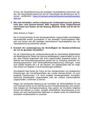 3 20 bzw. der Haushaltsrechnung des jeweiligen Haushaltsjahres entnommen wer- den. Die Haushaltsdokumente sind auf der Internetseite des Ministeriums der Fi- nanzen veröffentlicht (https://mf.sachsen-anhalt.de/finanzen/haushalt/haushalts- plae ne/). 3. Wie viele Immobilien, welche in Nutzung der Landesregierung sind, gehören nicht dem Land Sachsen-Anhalt? Bitte insgesamt sowie aufgeschlüsselt nach Kosten zum Nutzen, Art der Nutzung, Behörde, Größe und Ort der Im- mobilien. Siehe Antwort zu Frage 1. Die im Zusammenhang mit den fremdangemieteten Liegenschaften einschlägigen Haushaltsmittel werden grundsätzlich in den jeweiligen Facheinzelplänen etati- siert und können dort den jeweiligen beschlossenen Haushaltsplänen bzw. der Haushaltsrechnung entnommen werden. 4. Evaluiert die Landesregierung die Sinnhaftigkeit der Besitzerverhältnisse der von ihr genutzten Immobilien? Für die Unterbringung der Landesverwaltung gibt es verschiedene Möglichkeiten der Bedarfsdeckung. Neben der Nutzung landeseigener Liegenschaften ist es üb- lich, dass Flächen angemietet oder auch Liegenschaften angekauft werden. Im Rahmen des Entscheidungsprozesses werden die zur Verfügung stehenden Un- terbringungsszenarien einer Wirtschaftlichkeitsuntersuchung unterzogen, wobei auch weitere Aspekte wie z. B. die Standort- und Objektqualität oder ein mögli- cher Ankauf von Objekten in die Entscheidungen einfließen. Grundsätzlich liegt hierbei der Fokus auf den übergeordneten und strategischen Entwicklungen des Immobilienportfolios des Landes Sachsen-Anhalt, um auch langfristig Optimierungen z. B. durch Aufgabe fremdangemieteter Immobilien, Sanierung landeseigener Liegenschaften oder den Verkauf unwirtschaftlicher Liegenschaften, vornehmen zu können. Wegen der wachsenden Bedeutung der Immobilien als Wirtschaftsfaktor für das Land Sachsen-Anhalt ist die Optimierung des Immobilienbestandes eine wesent- liche Aufgabe der Vermögensverwaltung. Dazu gehört, die Immobilien möglichst sinnvoll und effizient zu nutzen, verstärkt wirtschaftliche Gesichtspunkte zu be- achten und nach kaufmännischen Methoden zu arbeiten sowie die entbehrlichen Immobilien renditeorientiert zu verwerten.