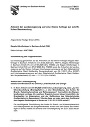 3 Insofern muss aus brandschutzfachlicher Sicht eine Brandentstehung verhindert bzw. die Brandausbreitung auf ein Minimum verringert werden. Dies kann zumin- dest durch die Bildung von Brandabschnitten erfolgen. In Anlehnung an die Regelungen des Landes Brandenburg (Kunststofflager- Richtlinie) sollte auch im Hinblick auf die fehlende Löschwasserversorgung eine 2 Abschnittsbildung von maximal 200 m Grundfläche erfolgen. Die Brandgassen- breite sollte mindestens 5 Meter betragen, um eine effektive Verhinderung der Brandweiterleitung zu gewährleisten. 2. In ihrer Antwort vom 07.07.2020 erklärt die Landesregierung, dass eine Be- räumung des illegalen Reifenlagers im Wege der Ersatzvornahme „mit er- heblichen Kosten“ verbunden wäre. Insofern wird unterstellt, dass Er- kenntnisse zu deren Höhe zumindest in groben Schätzungen vorliegen müssen. Wie hoch wären die Kosten der Beräumung des Reifenlagers im Wege der Ersatzvornahme? Für eine konkrete Kostenschätzung der Entsorgung von Altreifen ist grundsätzlich darauf zu verweisen, dass seriöse und belastbare Aussagen nahezu unmöglich sind, da es sich bei den Altablagerungen von Altreifen um Vorgänge handelt, die Jahrzehnte zurückreichen. Die betroffenen Flächen sind bereits zugewuchert (Holundersträucher etc.). Weiterhin macht es einen bedeutsamen Unterschied, ob es sich bei den Altreifen um Pkw- oder Lkw-Altreifen, mit oder ohne Felge handelt. Es ist davon auszuge- hen, dass neben den reinen Entsorgungskosten erhebliche Aufwendungen getä- tigt werden müssten, um die Altreifen freizulegen, aufzunehmen und zu verladen. Die Schätzungen zu den Lagermengen an Altreifen belaufen sich auf ca. 2.000 Tonnen, bei einem hohen Anteil an Lkw-Reifen, soweit erkennbar überwie- gend ohne Felgen. Bei der letzten Ersatzvornahme des Burgenlandkreises am Standort Naundorf im Jahr 2017 wurden auch über 70 Tonnen Altreifen entsorgt (überwiegend Lkw- Altreifen). Dabei wurden 200 €/t netto berechnet. Daraus ergeben sich nach grober Schätzung für mögliche Entsorgungskosten für 2.000 Tonnen Altreifen in Großkorbetha eine mögliche Größenordnung von etwa 450.000 bis 500.000 Euro.