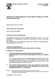 Landtag von Sachsen-Anhalt Drucksache 7/5003 01.10.2019 Antwort der Landesregierung auf eine Kleine Anfrage zur schrift- lichen Beantwortung Abgeordneter Hannes Loth (AfD) 190 tote Ferkel bei Tiertransport Kleine Anfrage - KA 7/2913 Vorbemerkung des Fragestellenden: Die Mitteldeutsche Zeitung und die Volksstimme berichteten am 31.07., am 01. und 02.08.2019, z. T. widersprüchlich, über einen Tiertransport mit zuletzt 190 verende- ten Ferkeln. Der Empfänger war die Mastanlage Peckfitz der PELAPRO Schweineproduktion Deutschland GmbH und Co. KG. Antwort der Landesregierung erstellt vom Ministerium für Umwelt, Landwirtschaft und Energie A. Situation im Erzeugerbetrieb 1. In welchem Ferkelerzeugerbetrieb startete der Ferkeltransport? Bitte Firmenname und -sitz sowie Bestandsgröße (Anzahl der Tierplätze) angeben. Der Transport startete bei dem Ferkelerzeugerbetrieb PELAPRO Pigs GmbH am Betriebsstandort Galmer Str. 1a, 14715 Milower Land, OT Zollchow. Der Betrieb liegt im Landkreis Havelland in Brandenburg. Zum Stichtag 01.01.2019 lag eine Bestandsgröße von 2.243 Sauen vor. 2. Nach welchem Haltungsverfahren werden die Zuchtsauen in dem Ferkel- erzeugerbtrieb gehalten? Wie lang ist die Säugezeit und wie hoch ist die Saugferkelmortalität (%) in dem Betrieb? Hinweis: Die Drucksache steht vollständig digital im Internet/Intranet zur Verfügung. Bei Bedarf kann Einsichtnahme in der Bibliothek des Landtages von Sachsen-Anhalt erfolgen oder die gedruckte Form abgefordert werden. (Ausgegeben am 01.10.2019)