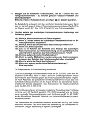 5 14. Bezogen auf die ermittelten Todesursachen, kam es - seitens des Tier- transportunternehmens - zu welchen genauen Gesetzesverstößen und Straftatbeständen? Bitte die einzelnen Tatbestände den jeweiligen §§ der Gesetze zuordnen. Die Beladedichte entsprach nicht den rechtlichen Mindestanforderungen. Damit liegt ein Verstoß gegen § 9 Abs. 2 Tierschutztransportverordnung (TierSchTrV) vor. Dies ist gemäß § 21 Abs. 1 Ziff. 8 TierSchTrV eine Ordnungswidrigkeit. 15. Wurden seitens des zuständigen Kreisveterinäramtes Strafanzeige und Strafantrag gestellt? 15.1. Wenn ja, bitte Aktenzeichen und Datum angeben. 15.2. Wenn ja, wurde seitens der zuständigen Staatsanwaltschaft ein Er- mittlungsverfahren eingeleitet? 15.3. Wenn ja, wie ist der aktuelle Stand des Ermittlungsverfahrens? 15.4. Wenn nein, bitte begründen. 15.5. Gab es im Rahmen der Amtshilfe eine Anzeige des zuständigen Kreisveterinäramtes zur Weiterbearbeitung an das zuständige Kreis- veterinäramt im Landkreis des Herkunftsbetriebes der Ferkel? 15.6. Wenn ja, aufgrund welcher Straftatbestände? 15.7. Wenn ja, welche Maßnahmen wurden seitens des Kreisveterinäram- tes gegen den Betreiber des Ferkelerzeugerbetriebes eingeleitet? 15.8. Wenn ja, wie ist der Stand des Verfahrens? 15.9. Wenn nein, warum wurden keine Maßnahmen beantragt? Bitte begründen. Die Fragen werden im Zusammenhang beantwortet: Durch die zuständige Polizeidienststelle wurde am 31. Juli 2019 unter dem Ak- tenzeichen SAW RKD VErm 1/ 4558 / 2019 ein Ermittlungsverfahren wegen des Verdachts des Verstoßes gegen das Tierschutzgesetz (TierSchG) eingelei- tet. Nach Abschluss der polizeilichen Ermittlungsmaßnahmen wurde das noch laufende Ermittlungsverfahren am 20. August 2019 an die sachleitende Staats- anwaltschaft Stendal abgegeben. Das Aktenzeichen der Staatsanwaltschaft lautet StA SDL 444 Js 140 45/19. Das Ermittlungsverfahren ist mangels vorsätzlicher Tierquälerei oder Tiertötung im Sinne von § 17 TierSchG gemäß § 170 II StPO eingestellt und zur Verfol- gung eventueller Ordnungswidrigkeiten nach Anhörung gemäß Nr. 90 RiStBV an den Altmarkkreis Salzwedel, Veterinär- und Lebensmittelüberwachungsamt, abgegeben worden. Das Veterinäramt des Landkreises Havelland wurde noch am Tag des Vorfalls telefonisch informiert. Der Anruf diente der Weiterleitung der vorliegenden In- formationen und ggf. Bearbeitung in eigener Zuständigkeit.