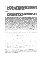 4 6. Ein Sponsoring ist in der Regel mit der Erwartung verbunden, eine Gegen- leistung dafür zu erhalten. Welche Gründe wurden von den Sponsoren für das Sponsoring genannt? Falls die Gründe der Landesregierung nicht be- kannt sind, warum wurden sie nicht erfragt? Entfällt. 7. Laut Einladung zur Veranstaltung traten InfraLeuna und MIBRAG als Part- ner der Veranstaltung auf. Wie kam es zu dieser Partnerschaft (bspw. An- sprache dieser durch den Organisator)? Die Landesregierung verfolgt das Ziel, die infolge des Ausstiegs aus der Kohlever- stromung wegfallenden wirtschaftlichen Möglichkeiten und Arbeitsplätze im Mittel- deutschen Revier durch den Aufbau neuer Wertschöpfungschancen zu kompensie- ren (vgl. Vorbemerkung der Landesregierung). Die Transformation des Reviers zu einem zukunftsfähigen Wirtschaftsstandort kann dabei nur gelingen, wenn auch für die besonders strukturprägenden Wirtschaftszweige Chemie und Energie neue Per- spektiven entwickelt werden. Diese Zielsetzungen der Landesregierung entsprechen denen der strukturprägenden Branchen, zu denen das Braunkohleförderunterneh- men im Revier sowie auch der Standortentwickler InfraLeuna GmbH gehören (an dem das Land Sachsen-Anhalt zudem als mittelbarer Gesellschafter beteiligt ist). Vor diesem Hintergrund hat die Landesregierung Gespräche mit der MIBRAG mbH und der InfraLeuna GmbH geführt, die in einem partnerschaftlichen Engagement zur Or- ganisation einer Strategiekonferenz und einer angemessenen Kostenteilung münde- ten. 8. Mit welchen Rechten und Pflichten der Partner war die Partnerschaft an der Veranstaltung verbunden? Die Partner vereinbarten eine angemessene Kostenteilung. 9. Welche Möglichkeiten gab es für andere Unternehmen und Verbände, Partner der Veranstaltung zu werden? Wurden andere Unternehmen und Verbände bezüglich einer möglichen Partnerschaft angesprochen? Mit dem Ziel einer potenziellen Partnerschaft zur Organisation der Veranstaltung wurden keine weiteren Unternehmen kontaktiert. Vertretern der Schwerpunktbran- chen wurde die Möglichkeit gegeben, sich den Veranstaltungsteilnehmern innerhalb einer Rahmenpräsentation als Aussteller vorzustellen. 10. Von wem wurde die Konferenz organisiert? Falls externe Firmen bzw. Partner Mitorganisator waren: Welche Firmen waren dies und wie sah ihr Beitrag zur Organisation der Konferenz aus? Die Konferenz wurde von der Investitions- und Marketinggesellschaft Sachsen-Anhalt mbH organisiert. Die terminliche und inhaltliche Abstimmung mit der Staatskanzlei Sachsen, dem Bundeskanzleramt und dem Büro des EU-Kommissars erfolgte über die Staatskanzlei Sachsen-Anhalt.